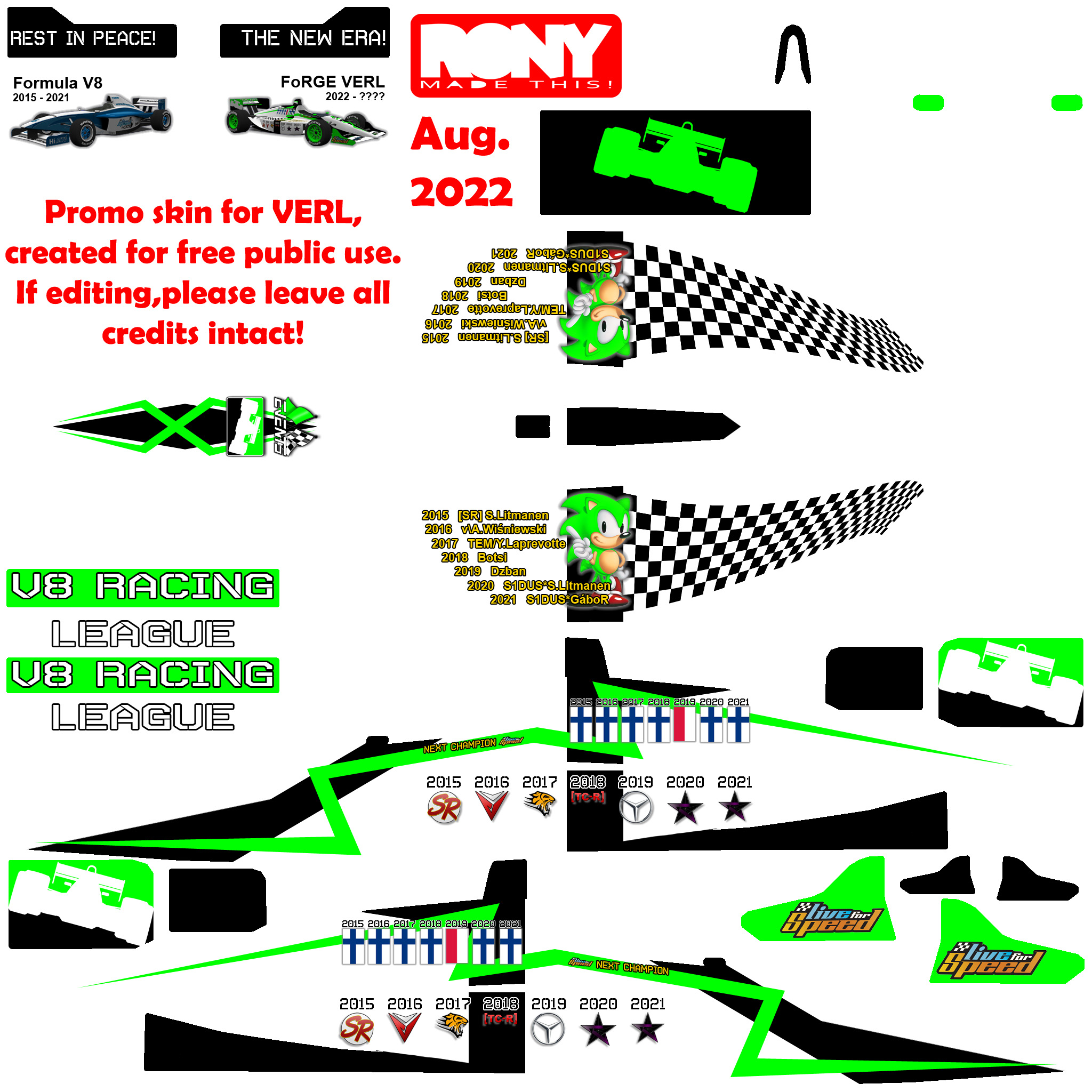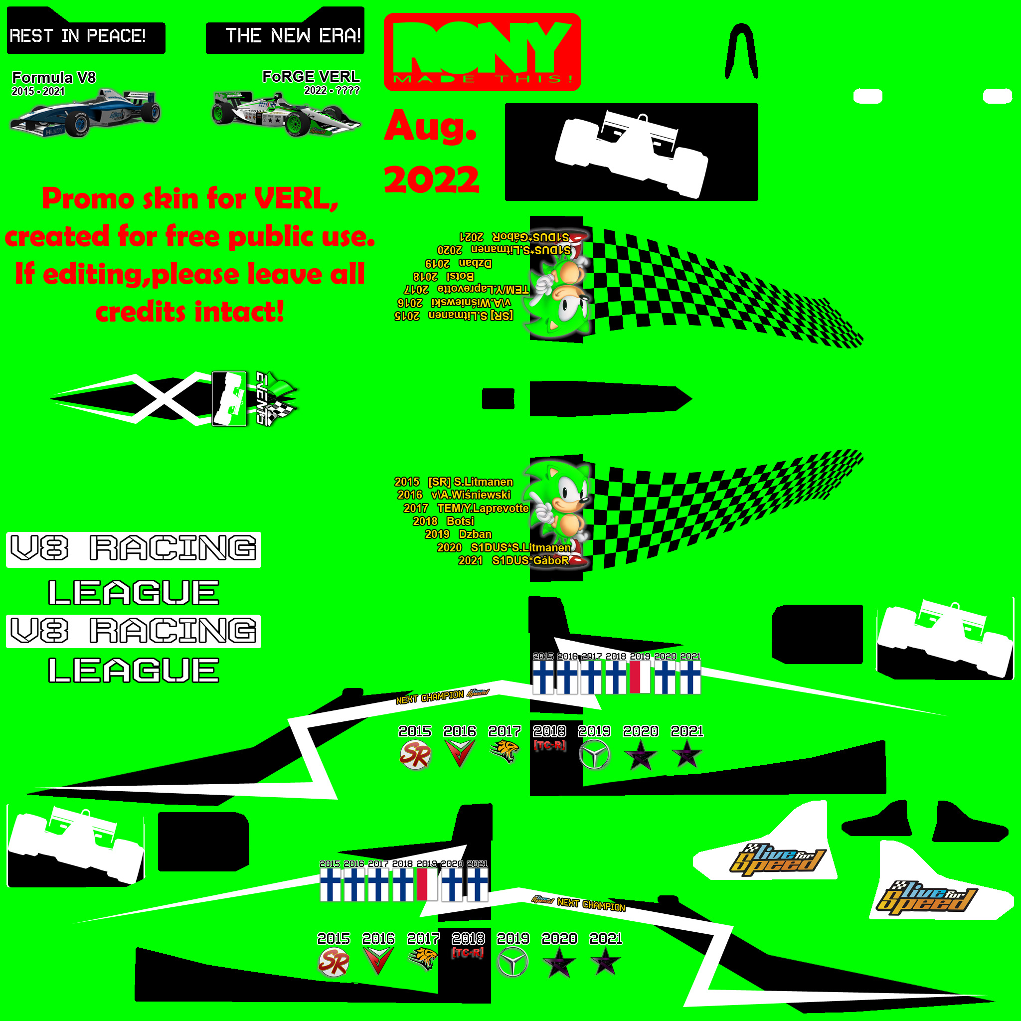 After 7 years running the Formula V8 car,VERL is ready to indroduce a brand new car as it is possible now. Highly influenced by early 90ies Indycar series,the wish was to have a similar car for the league,now with mods support it is possible - as at the end of 2021 season it was announced,VERL enters the turbo era! The car features a 650HP engine and rather simple aerodynamics to allow cars follow others slightly closer in turns,while the wider tyres will give a lot mechanical grip to catch any slides. This car should be a proper addition to Race Green Events organized leagues challenges.