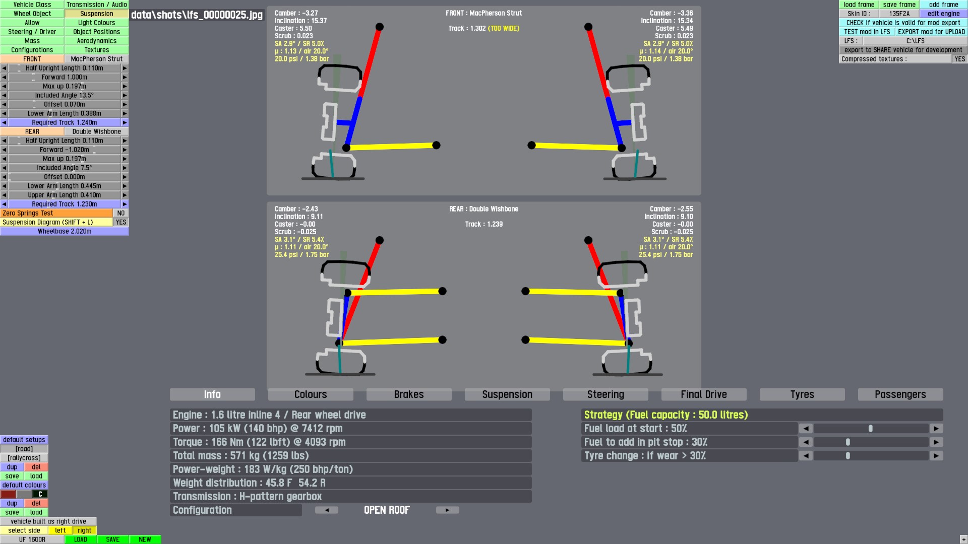 The LFS Vehicle editor provides options to create skin templates. A template helps you create skins for a vehicle by giving you the outlines of the vehicle's shape, within which you can draw the livery that will be drawn onto the vehicle.