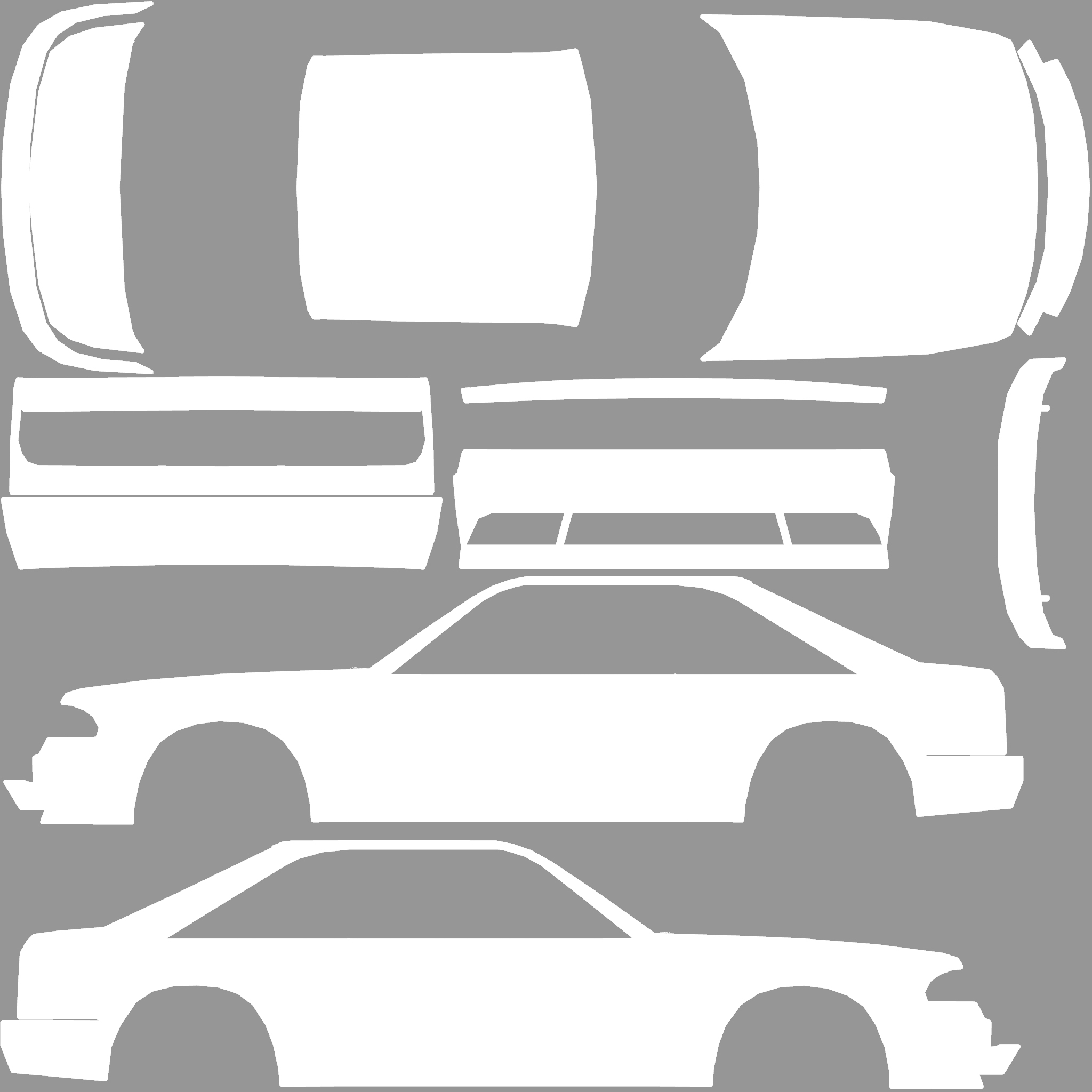 The LFS Vehicle editor provides options to create skin templates. A template helps you create skins for a vehicle by giving you the outlines of the vehicle's shape, within which you can draw the livery that will be drawn onto the vehicle.