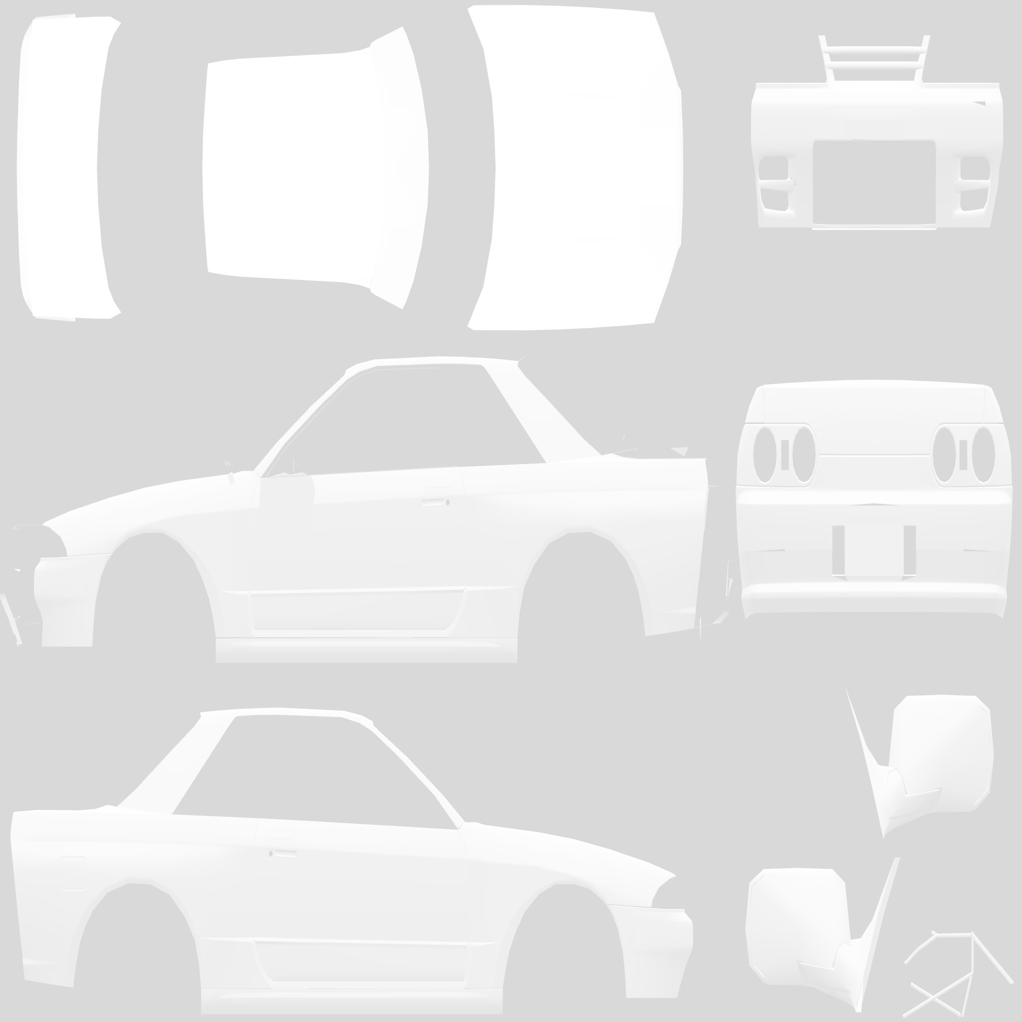 The LFS Vehicle editor provides options to create skin templates. A template helps you create skins for a vehicle by giving you the outlines of the vehicle's shape, within which you can draw the livery that will be drawn onto the vehicle.