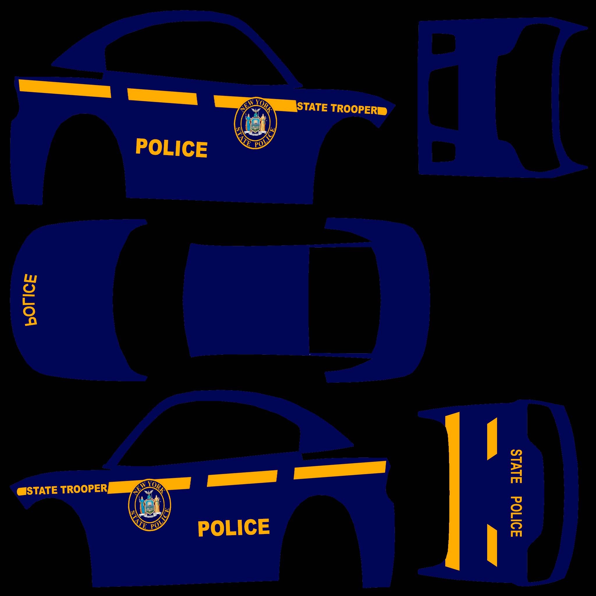 The LFS Vehicle editor provides options to create skin templates. A template helps you create skins for a vehicle by giving you the outlines of the vehicle's shape, within which you can draw the livery that will be drawn onto the vehicle.