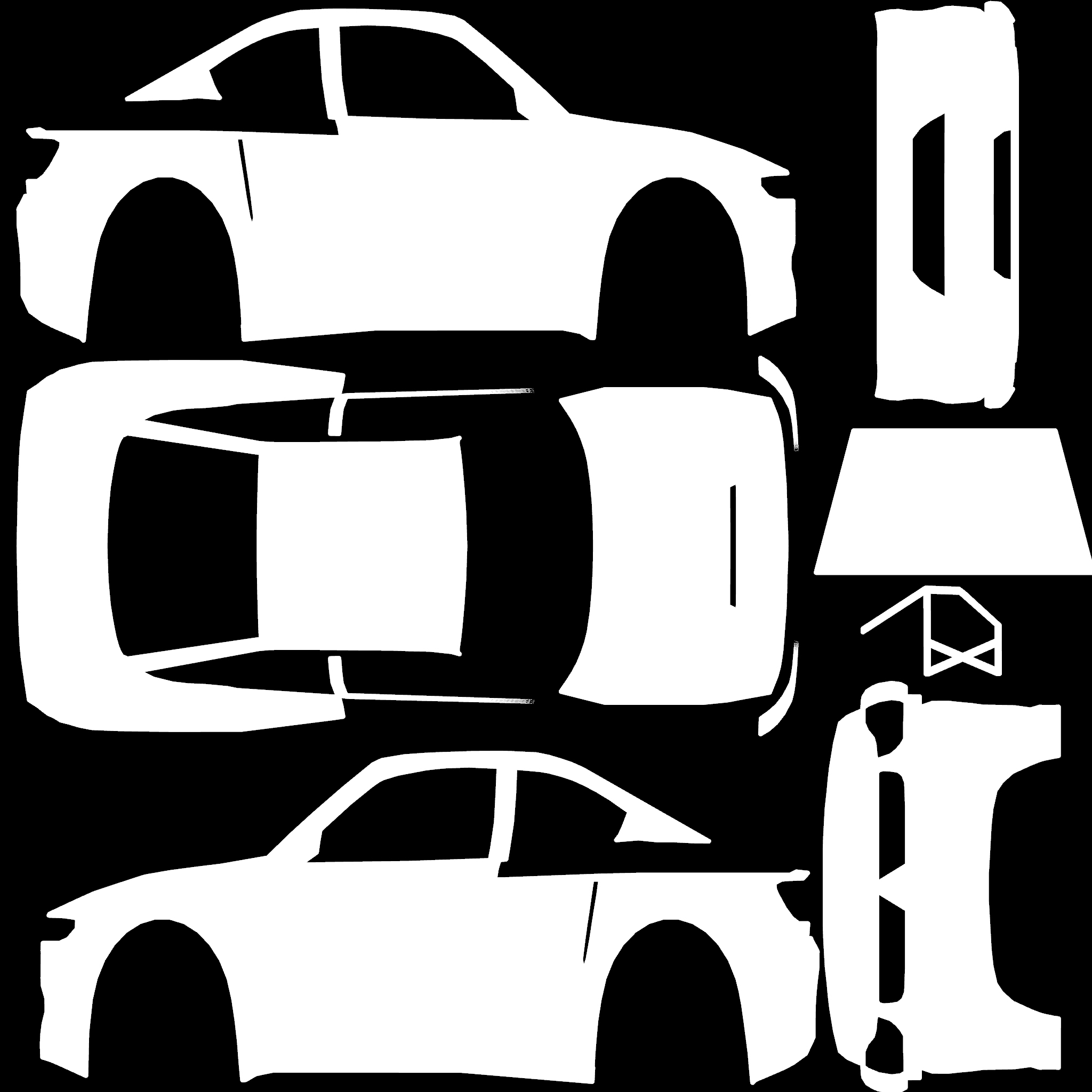 The LFS Vehicle editor provides options to create skin templates. A template helps you create skins for a vehicle by giving you the outlines of the vehicle's shape, within which you can draw the livery that will be drawn onto the vehicle.