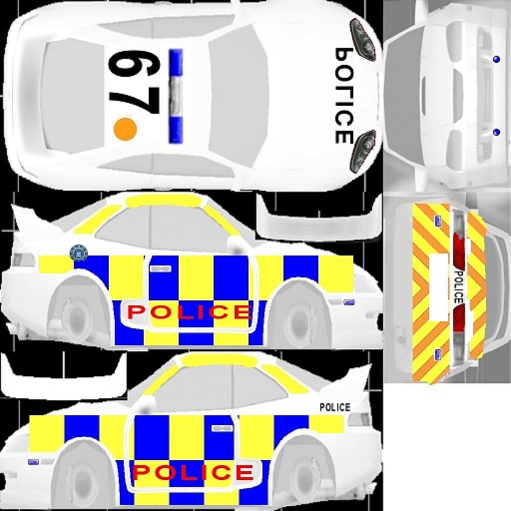 The LFS Vehicle editor provides options to create skin templates. A template helps you create skins for a vehicle by giving you the outlines of the vehicle's shape, within which you can draw the livery that will be drawn onto the vehicle.