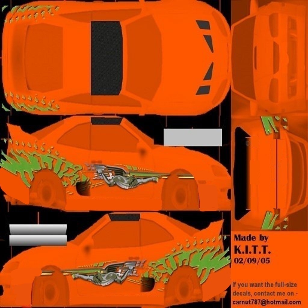 - Fast and Furious skin is made by K.I.T.T. in 2005 and edited by me to nicely fit my model with my own additions/fixes