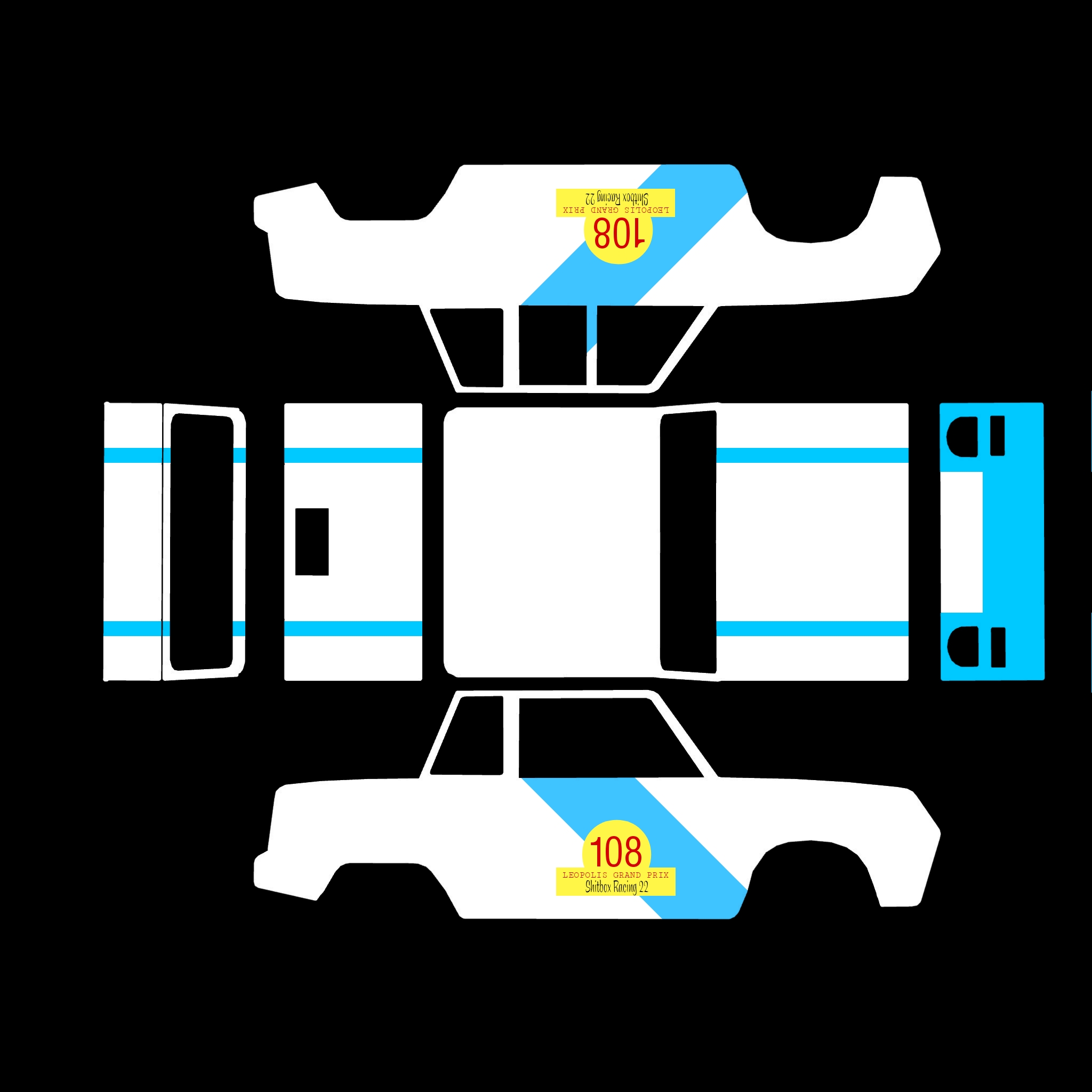 The LFS Vehicle editor provides options to create skin templates. A template helps you create skins for a vehicle by giving you the outlines of the vehicle's shape, within which you can draw the livery that will be drawn onto the vehicle.