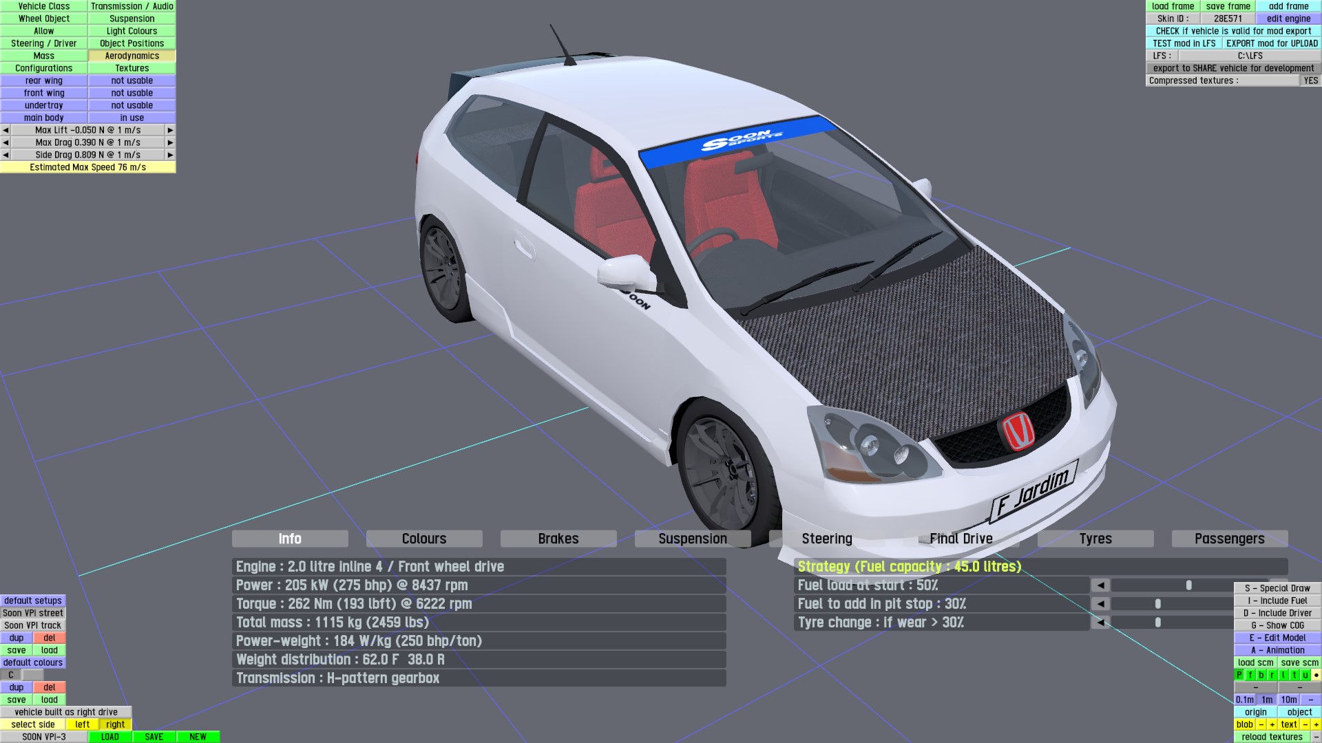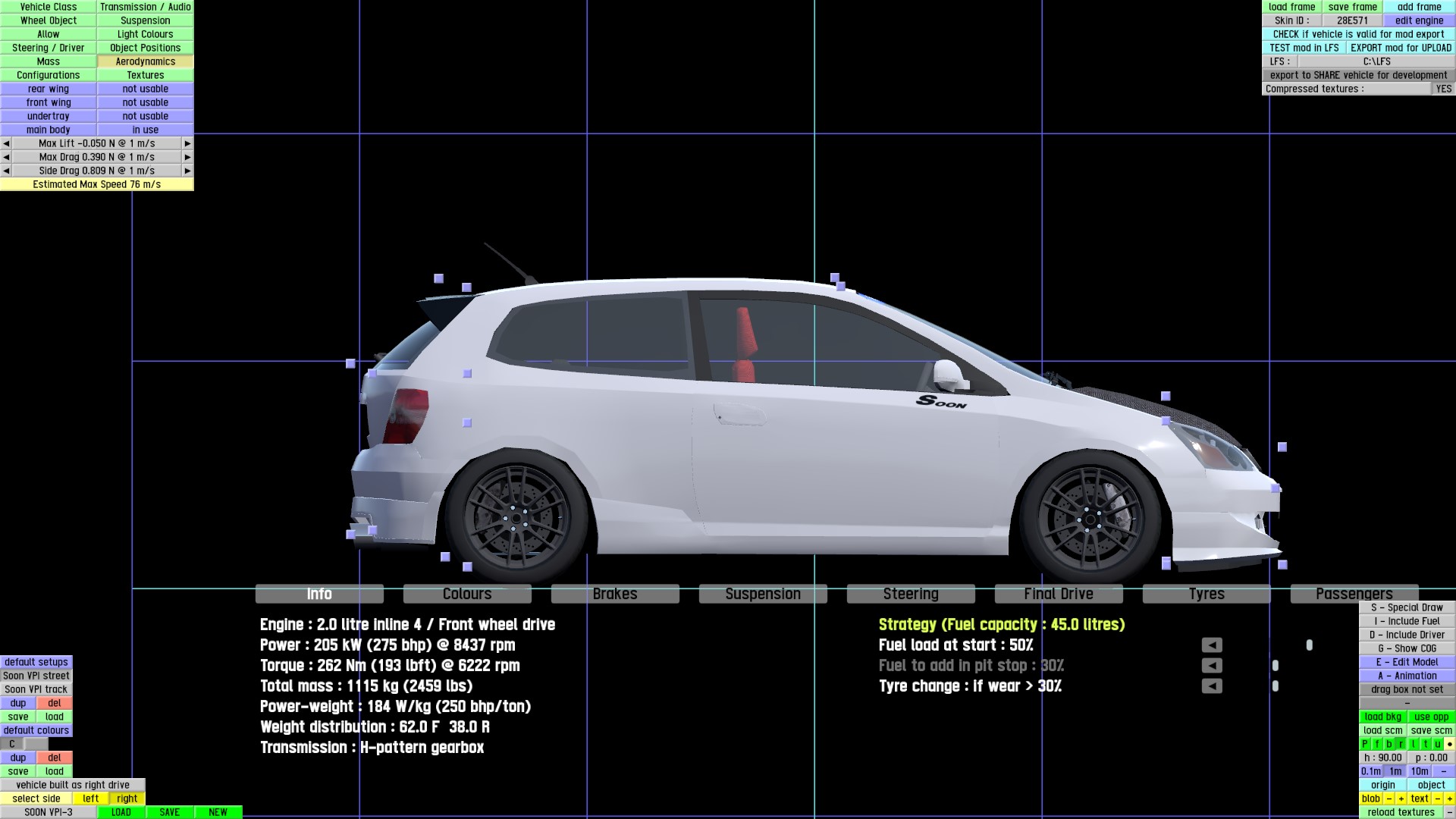 SOON SPORTS is a famous tuning garage in Japan knowing for developing racecars during the Group A days without any factory support. They were so good at it that the factory asked them for help in future developments of other cars. They now offer bolt on parts to complete demo cars. This is their version of Rubie's VPI-3 mod. Skin by Ghutra