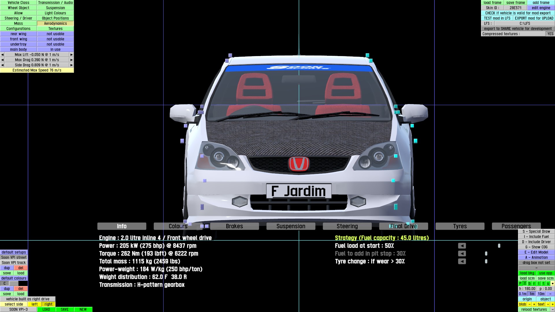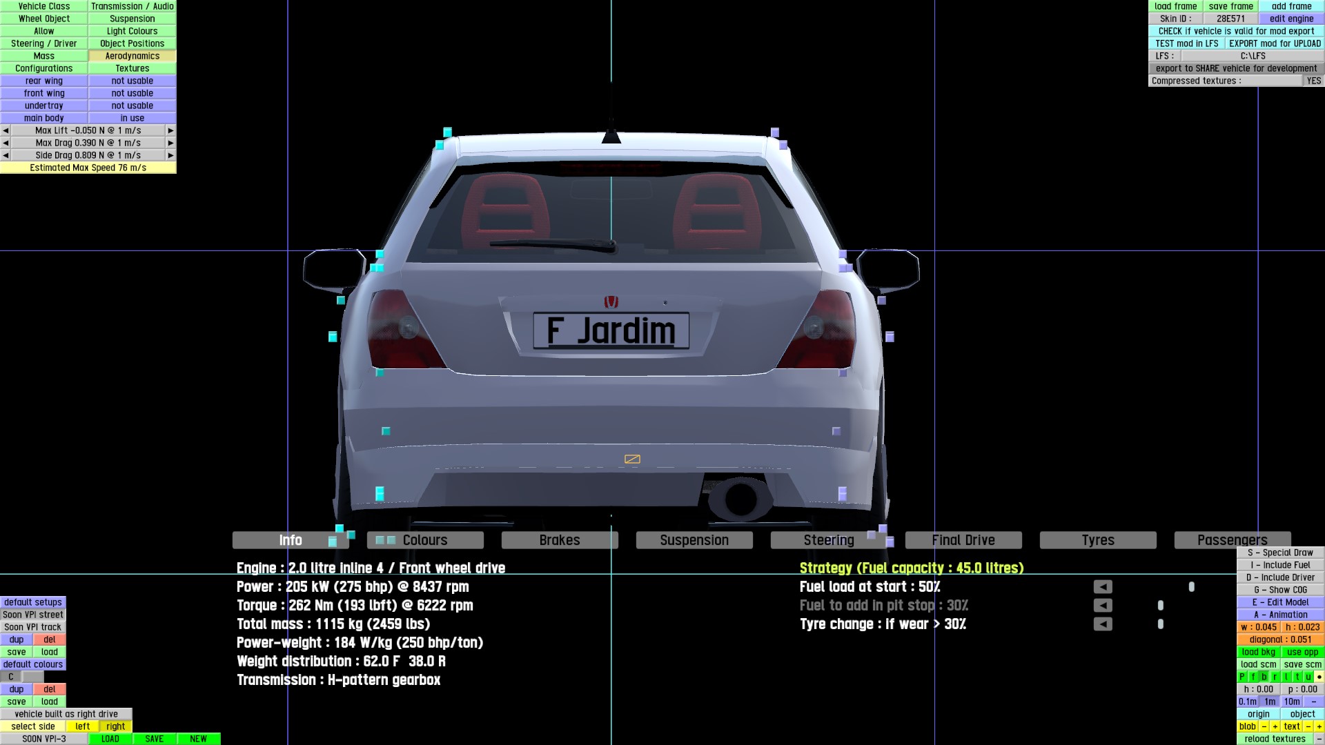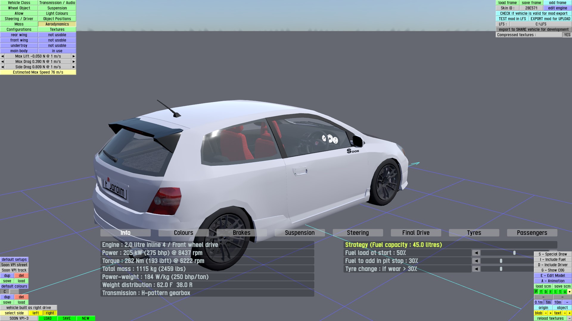 The LFS Vehicle editor provides options to create skin templates. A template helps you create skins for a vehicle by giving you the outlines of the vehicle's shape, within which you can draw the livery that will be drawn onto the vehicle.