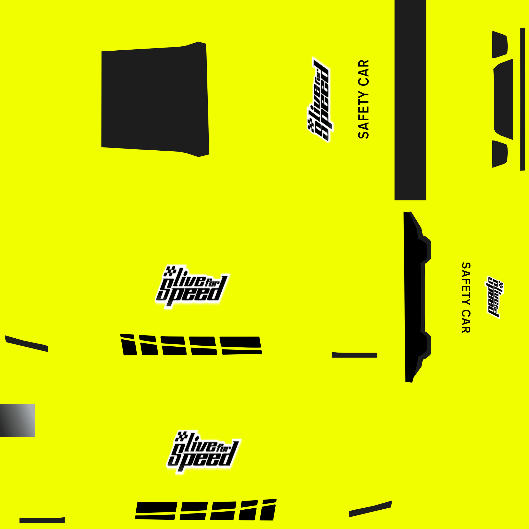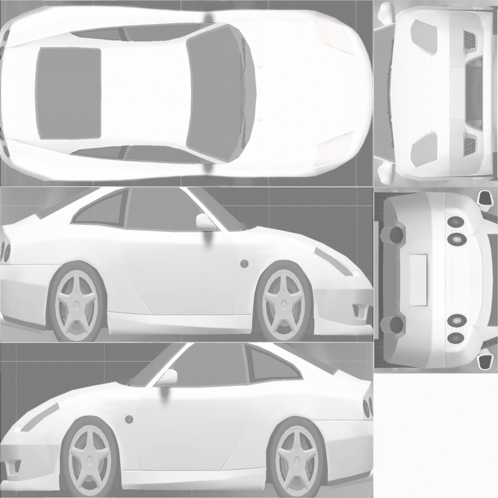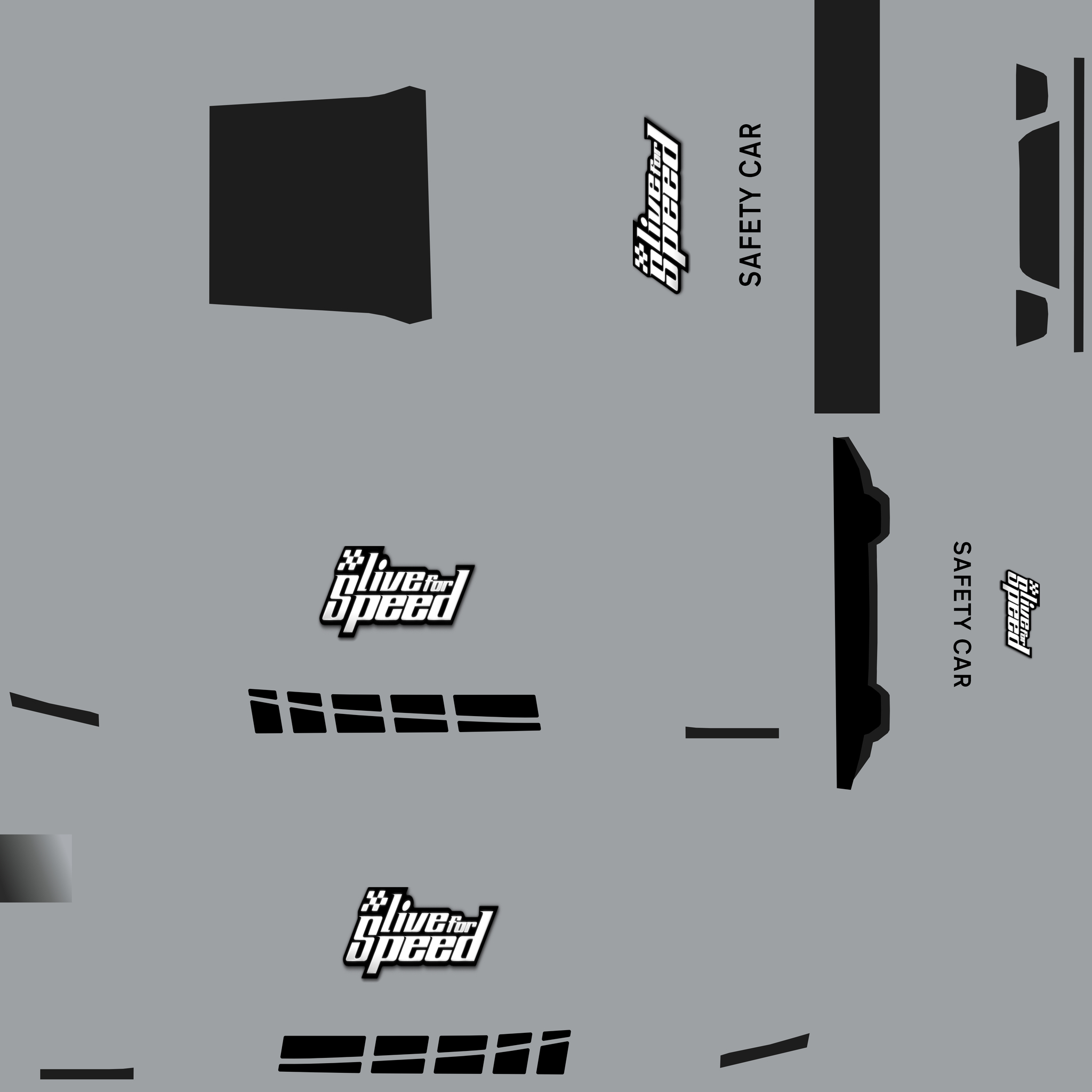 The LFS Vehicle editor provides options to create skin templates. A template helps you create skins for a vehicle by giving you the outlines of the vehicle's shape, within which you can draw the livery that will be drawn onto the vehicle.
