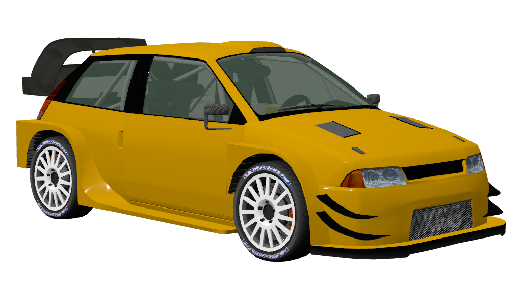 The XF GTI, reimagined in a 2017-21 WRC spec. Made to be effectively legal in the ruleset, it boasts an inline 4 1.6 turbo producing 383 bhp/465 Nm, put down through AWD via a sequential gearbox. Combined with aggressive aero, the performance is incredible - incredible cornering ability, fast acceleration and the best stage times.