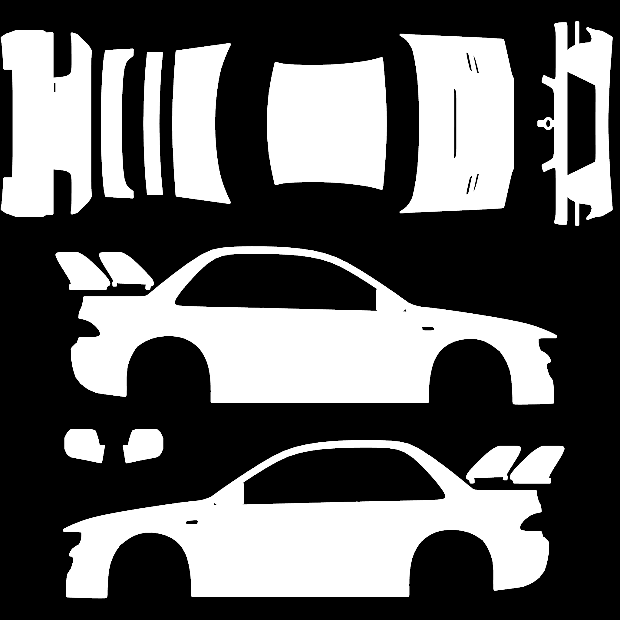 The LFS Vehicle editor provides options to create skin templates. A template helps you create skins for a vehicle by giving you the outlines of the vehicle's shape, within which you can draw the livery that will be drawn onto the vehicle.