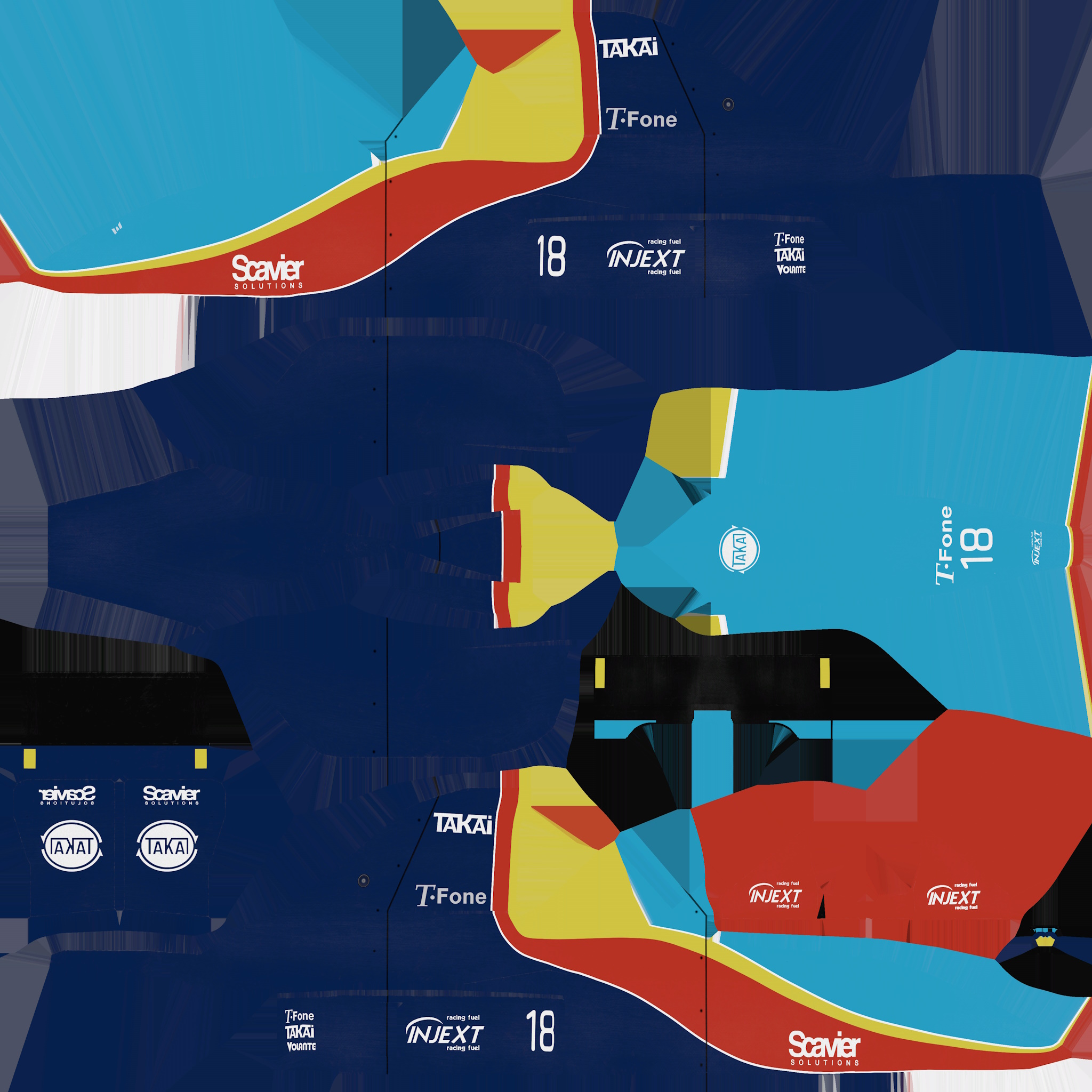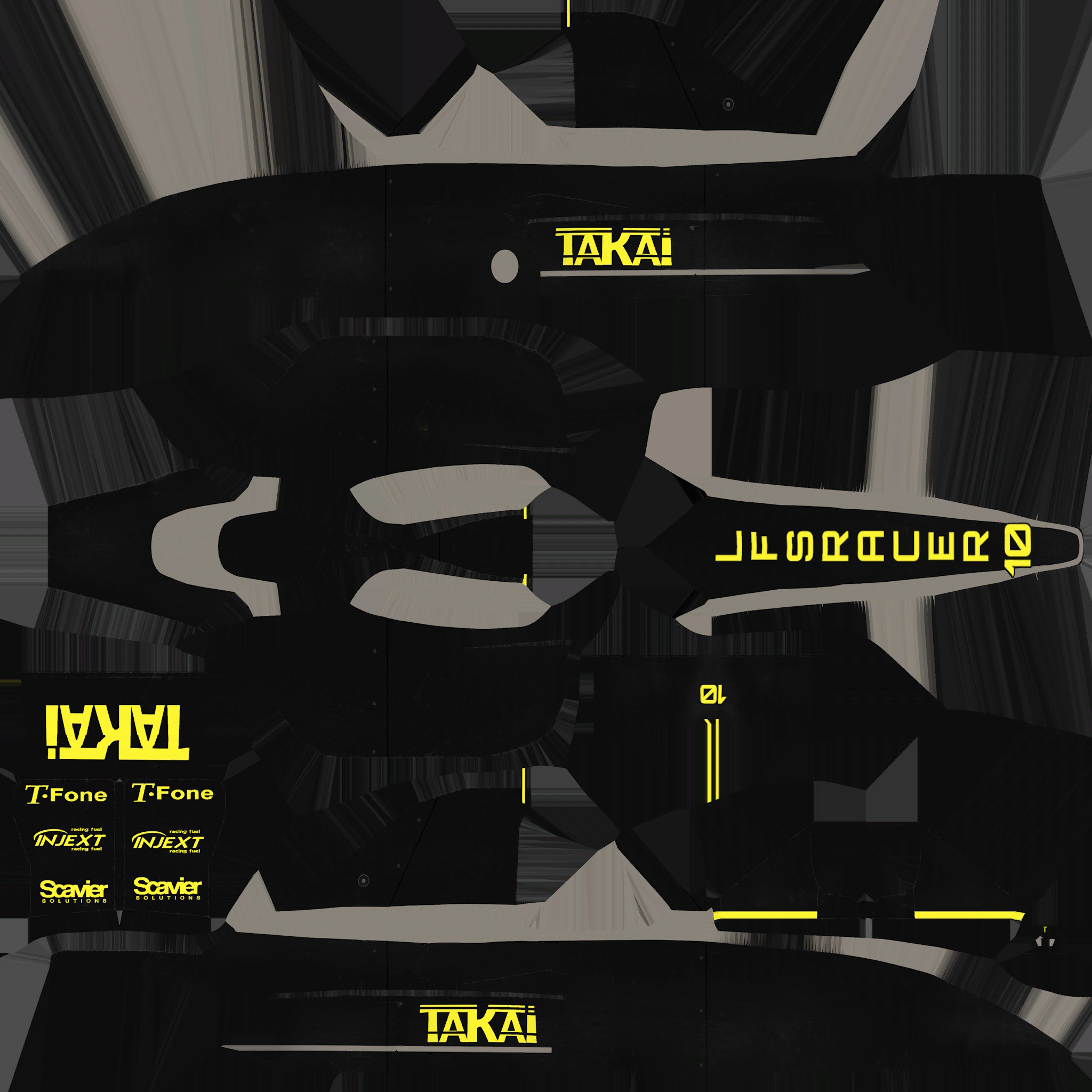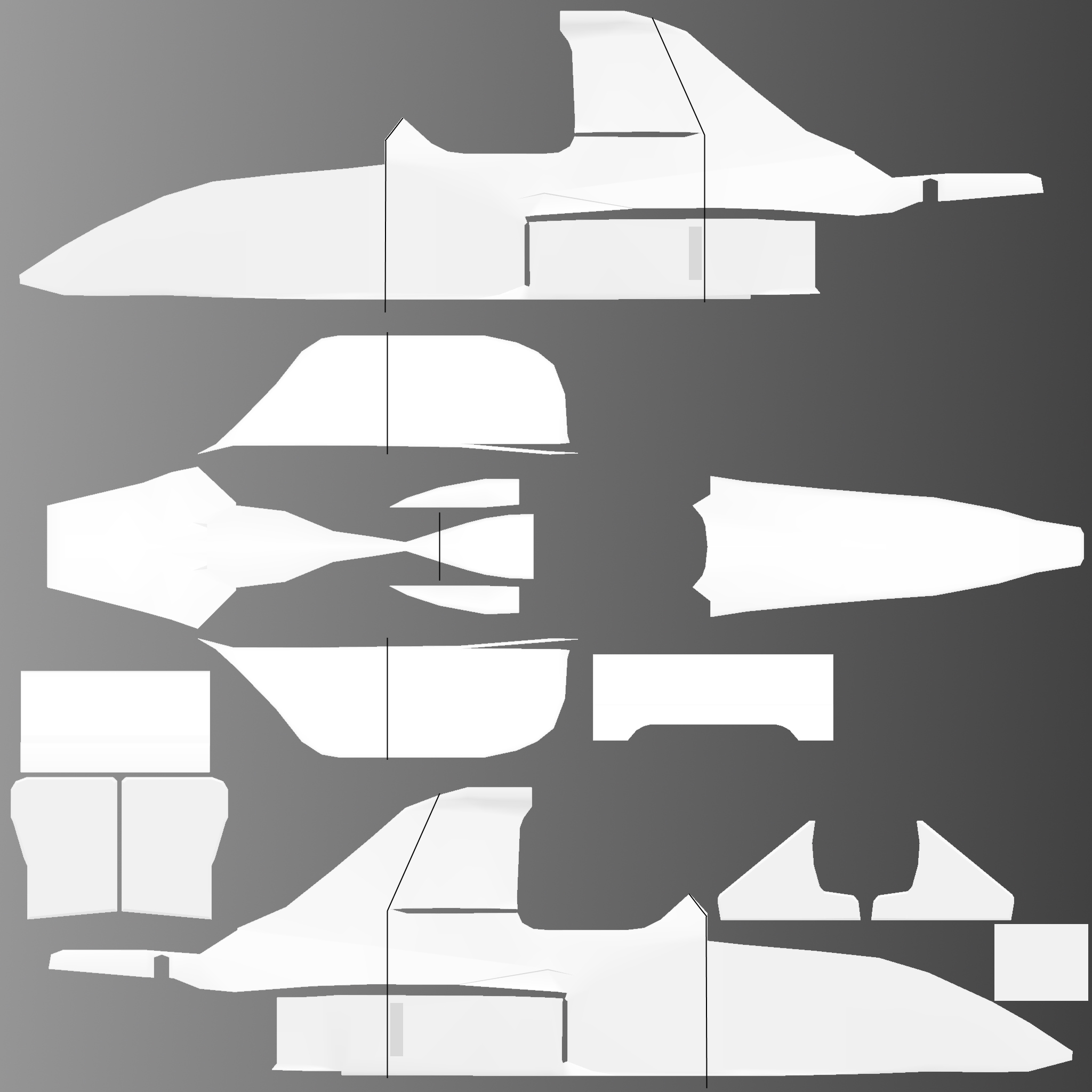 The LFS Vehicle editor provides options to create skin templates. A template helps you create skins for a vehicle by giving you the outlines of the vehicle's shape, within which you can draw the livery that will be drawn onto the vehicle.