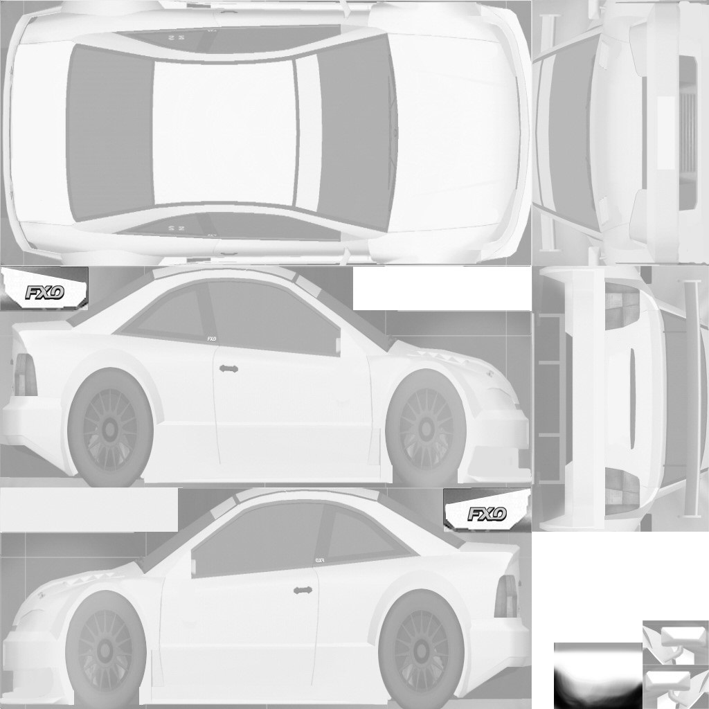 The LFS Vehicle editor provides options to create skin templates. A template helps you create skins for a vehicle by giving you the outlines of the vehicle's shape, within which you can draw the livery that will be drawn onto the vehicle.