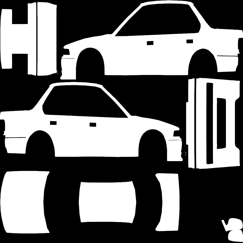 The LFS Vehicle editor provides options to create skin templates. A template helps you create skins for a vehicle by giving you the outlines of the vehicle's shape, within which you can draw the livery that will be drawn onto the vehicle.