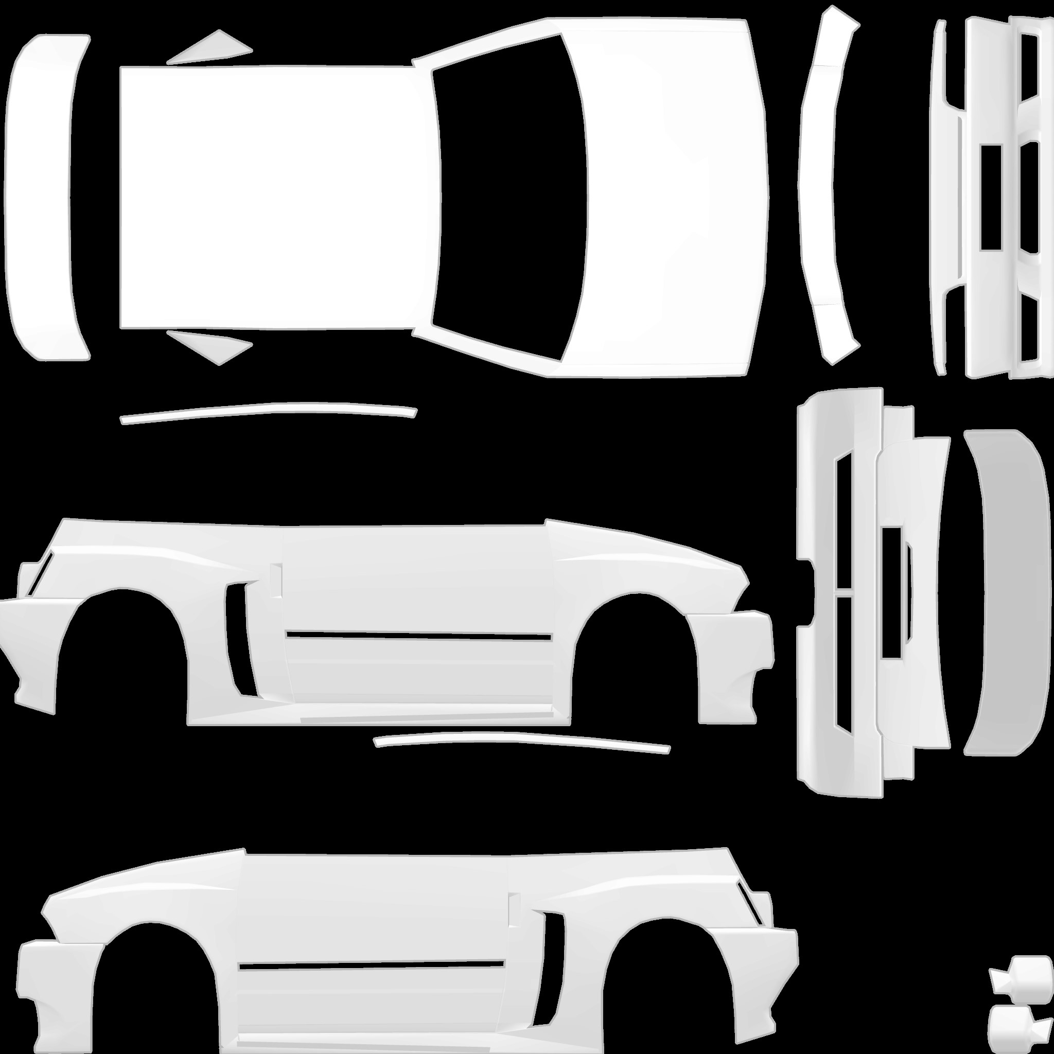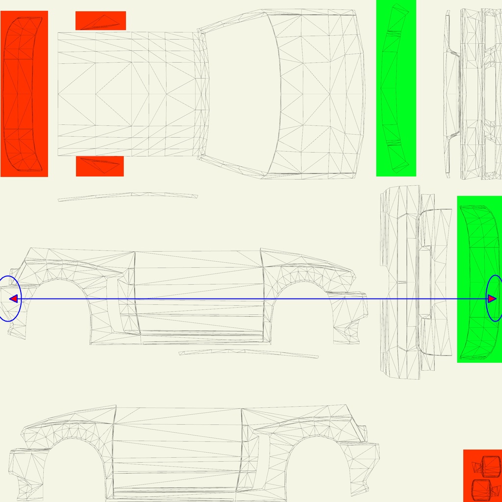 The LFS Vehicle editor provides options to create skin templates. A template helps you create skins for a vehicle by giving you the outlines of the vehicle's shape, within which you can draw the livery that will be drawn onto the vehicle.