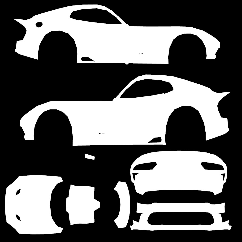The LFS Vehicle editor provides options to create skin templates. A template helps you create skins for a vehicle by giving you the outlines of the vehicle's shape, within which you can draw the livery that will be drawn onto the vehicle.