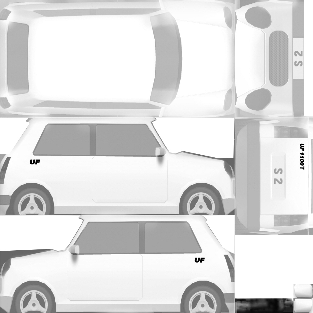 The LFS Vehicle editor provides options to create skin templates. A template helps you create skins for a vehicle by giving you the outlines of the vehicle's shape, within which you can draw the livery that will be drawn onto the vehicle.
