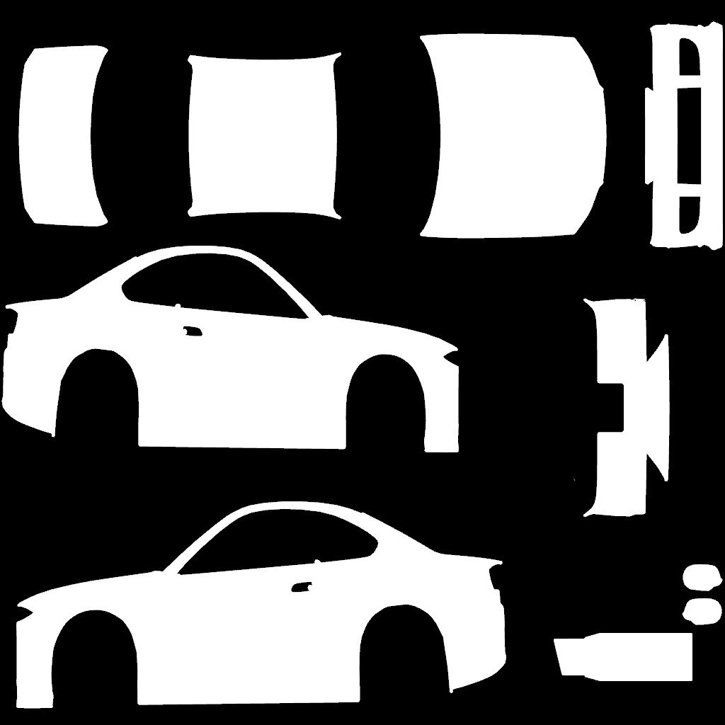 The LFS Vehicle editor provides options to create skin templates. A template helps you create skins for a vehicle by giving you the outlines of the vehicle's shape, within which you can draw the livery that will be drawn onto the vehicle.
