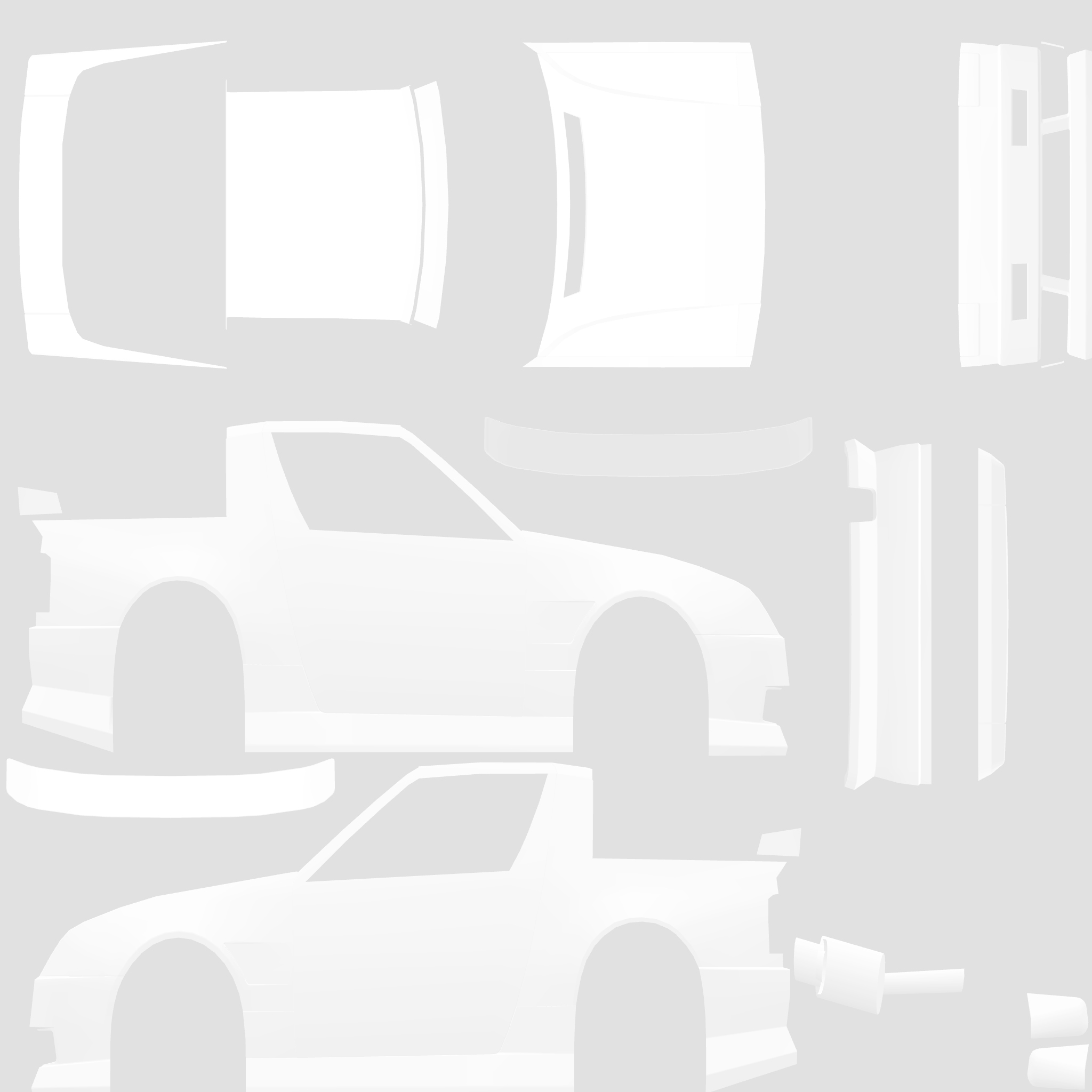 The LFS Vehicle editor provides options to create skin templates. A template helps you create skins for a vehicle by giving you the outlines of the vehicle's shape, within which you can draw the livery that will be drawn onto the vehicle.