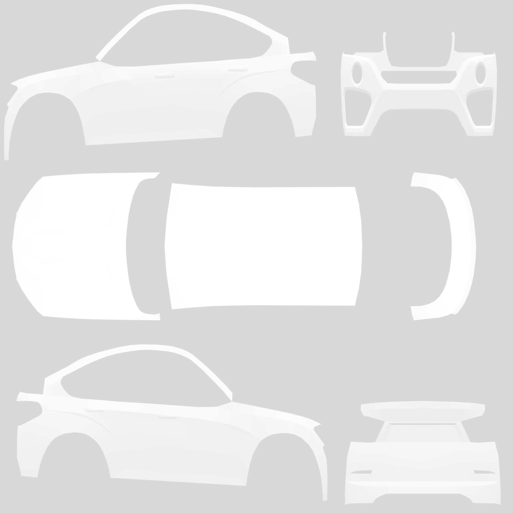The LFS Vehicle editor provides options to create skin templates. A template helps you create skins for a vehicle by giving you the outlines of the vehicle's shape, within which you can draw the livery that will be drawn onto the vehicle.