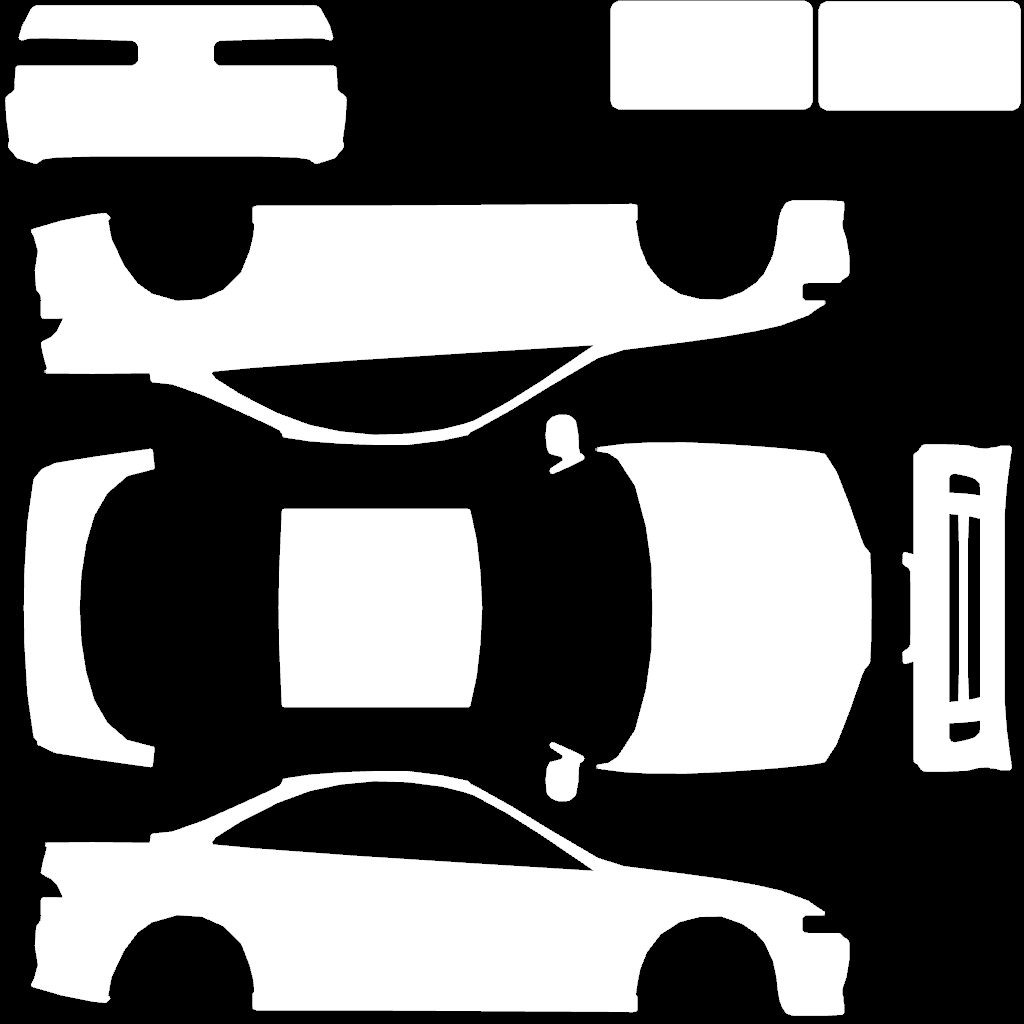 The LFS Vehicle editor provides options to create skin templates. A template helps you create skins for a vehicle by giving you the outlines of the vehicle's shape, within which you can draw the livery that will be drawn onto the vehicle.