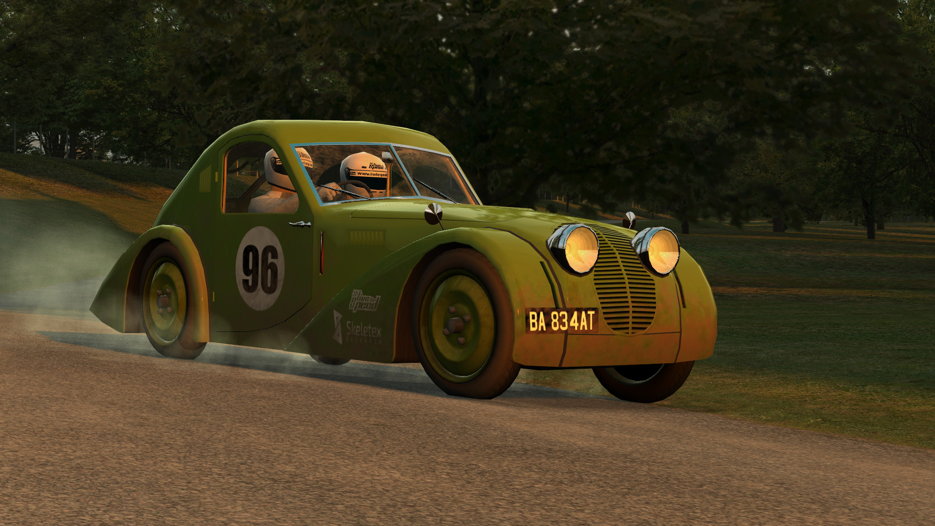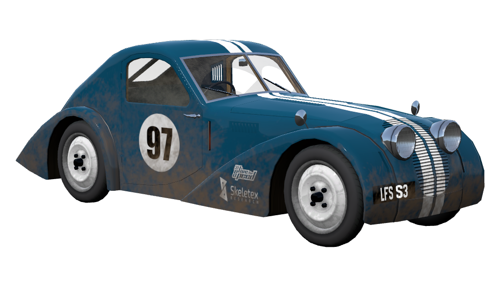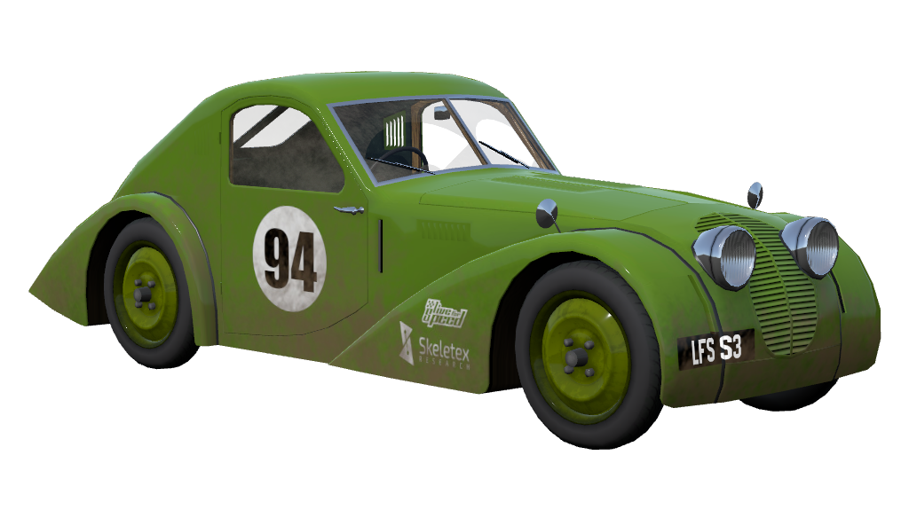 The mod represents a 1934 endurance rally coupé. Keep in mind, that it does not drive like a modern vehicle. The mod was designed to be as realistic as possible even at cost of handling sacrifices such as aerodynamic lift or not ideal force feedback (back in the day, zero self-centering effect was common). Thanks to the uncommon chassis, the physics is almost fully supported in the current LFS version. Only small aproximations had to be done with tire size and suspension stiffness, because of leaf springs and historic bias-ply tires. According to a stock car manual, the double-clutch technique is not needed, but pressing an accelerator during a down-shift is recommended. The IRL car had steering wheel on the right side, but both configurations are available for more versatility. Windshield wipers can be moved using the following command: