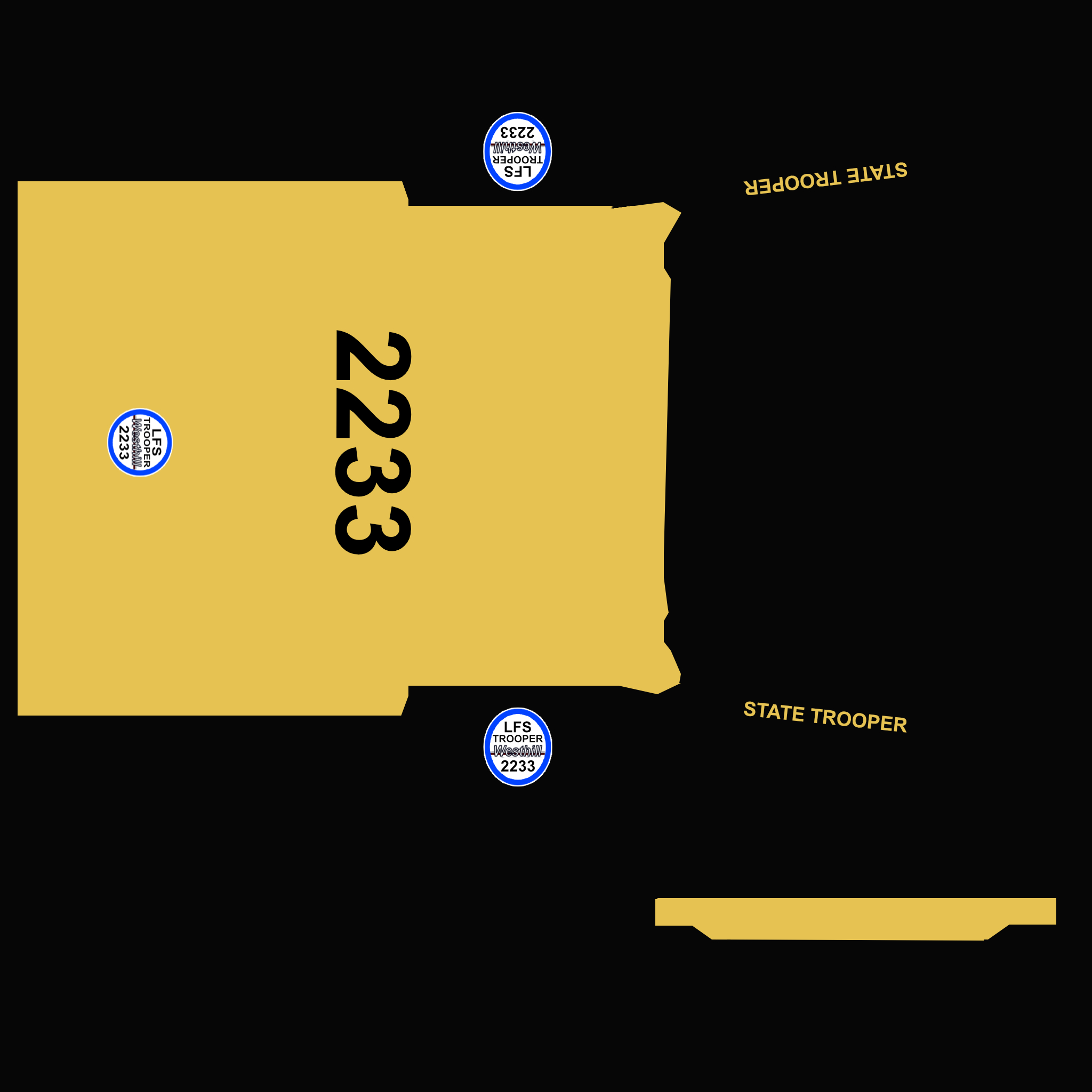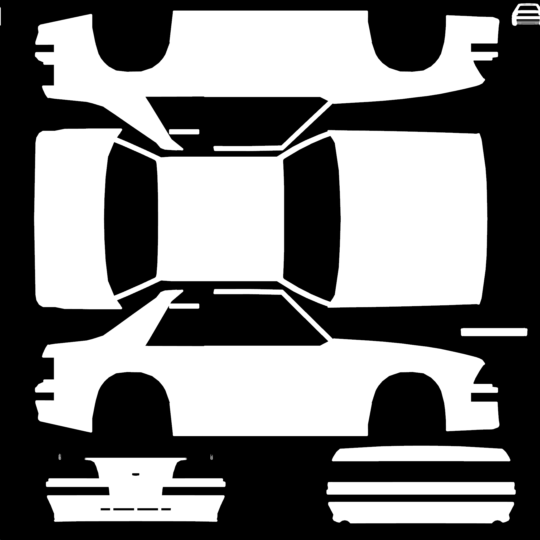 The LFS Vehicle editor provides options to create skin templates. A template helps you create skins for a vehicle by giving you the outlines of the vehicle's shape, within which you can draw the livery that will be drawn onto the vehicle.