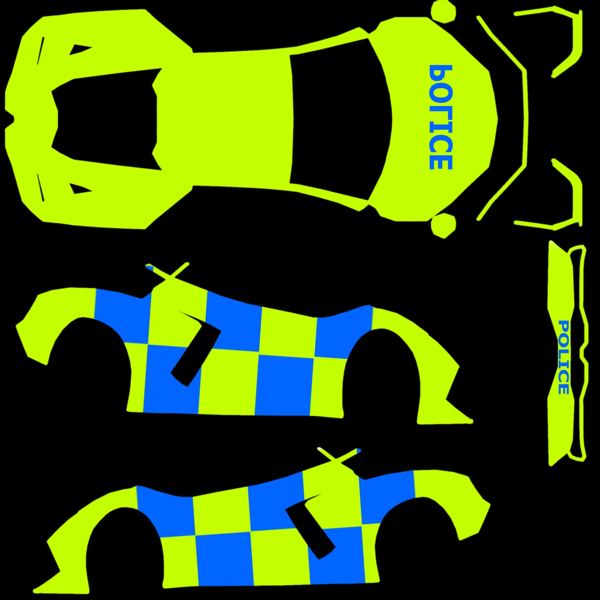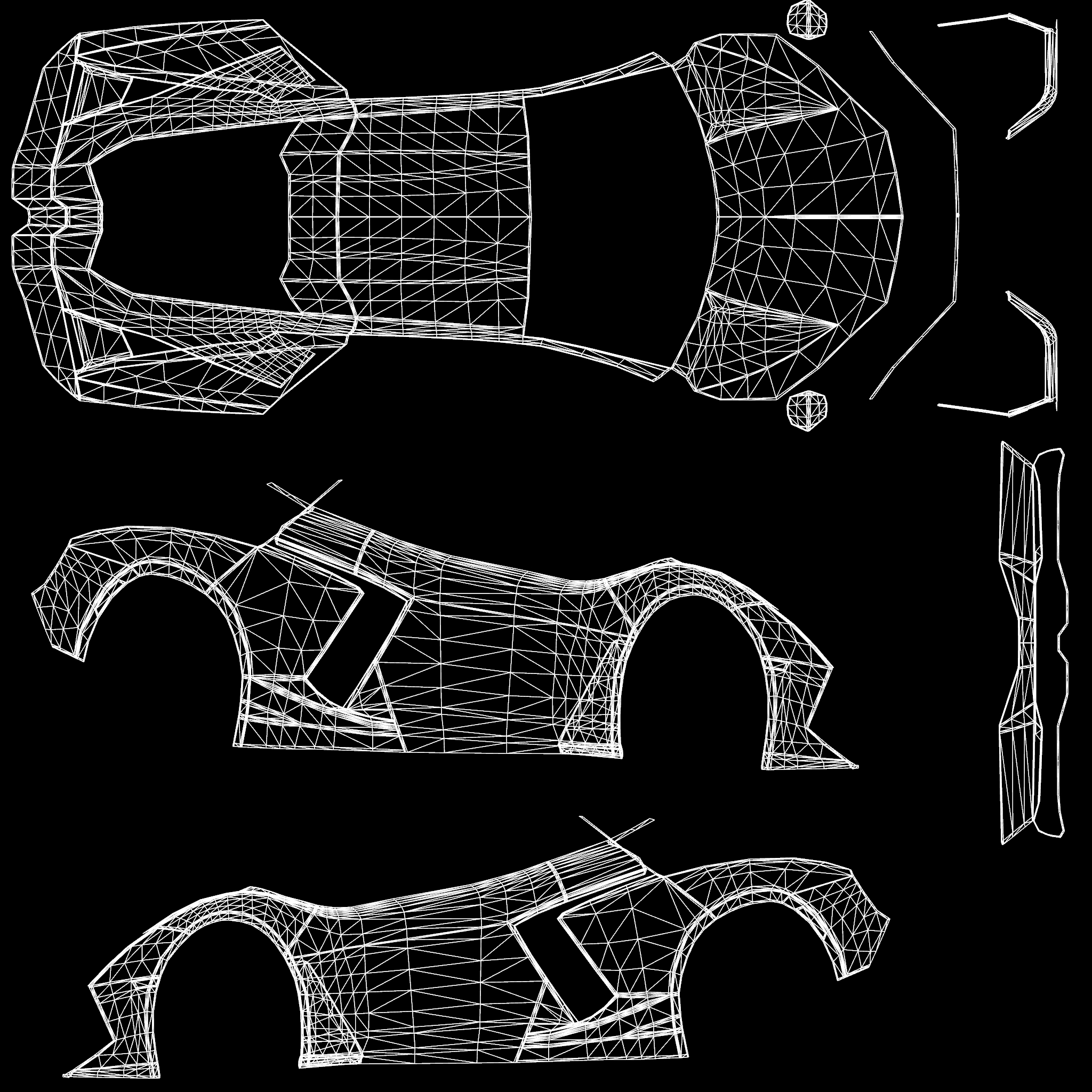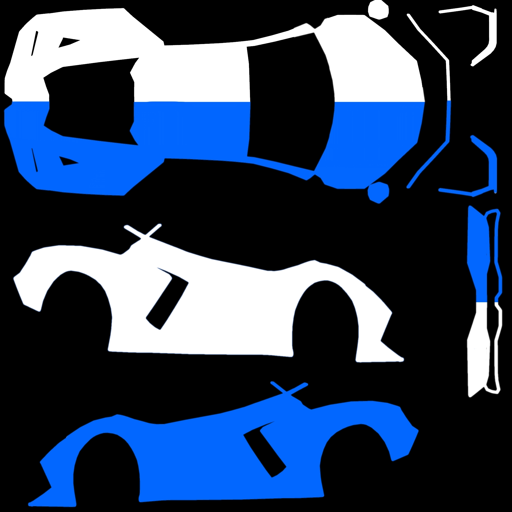 The LFS Vehicle editor provides options to create skin templates. A template helps you create skins for a vehicle by giving you the outlines of the vehicle's shape, within which you can draw the livery that will be drawn onto the vehicle.