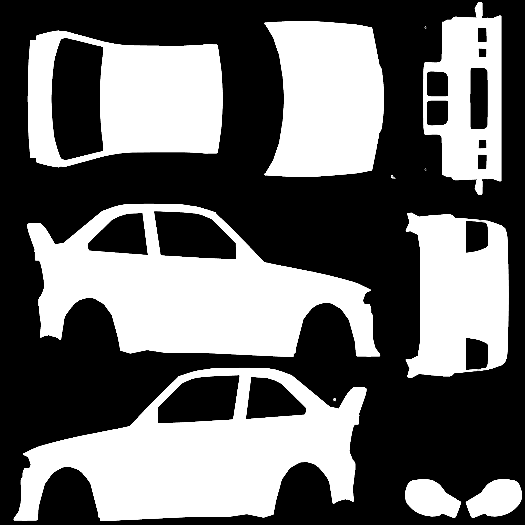 The LFS Vehicle editor provides options to create skin templates. A template helps you create skins for a vehicle by giving you the outlines of the vehicle's shape, within which you can draw the livery that will be drawn onto the vehicle.