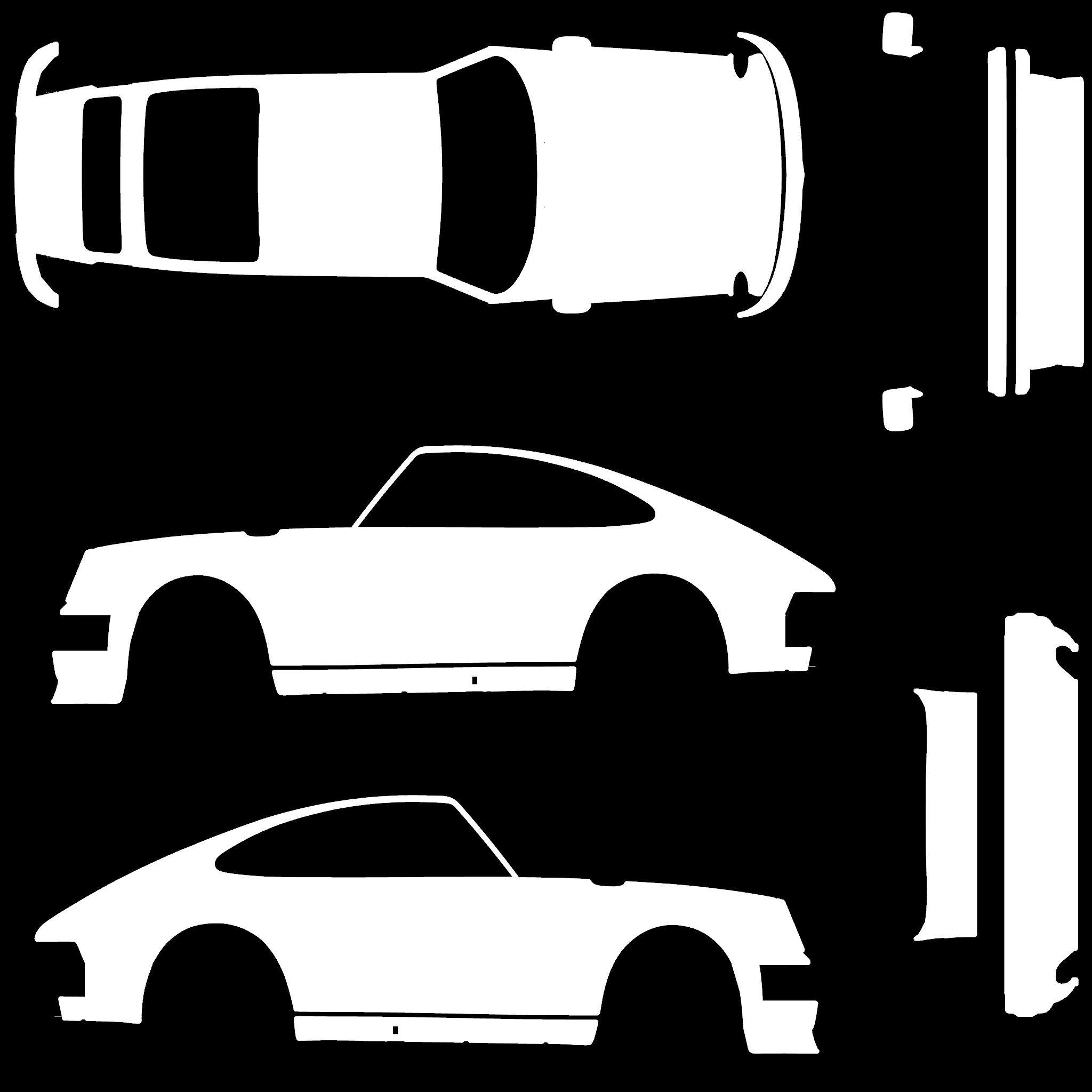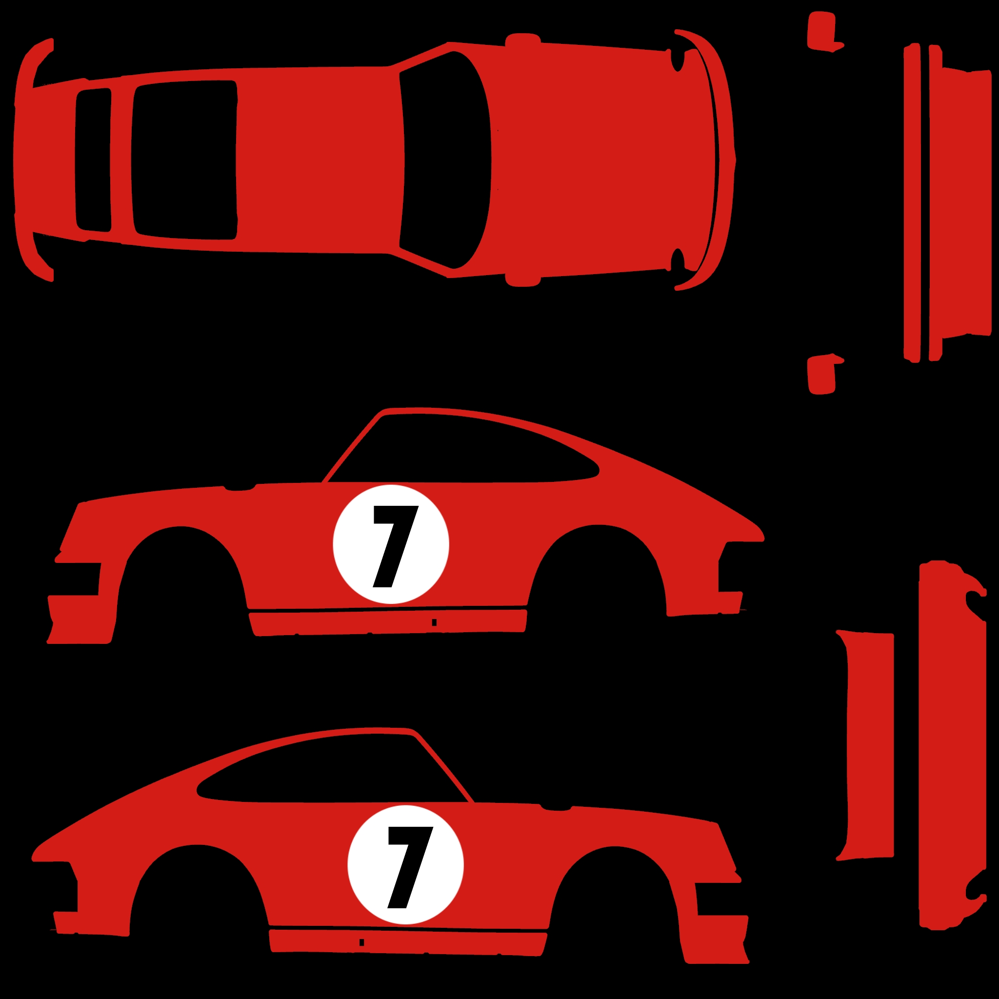 The LFS Vehicle editor provides options to create skin templates. A template helps you create skins for a vehicle by giving you the outlines of the vehicle's shape, within which you can draw the livery that will be drawn onto the vehicle.