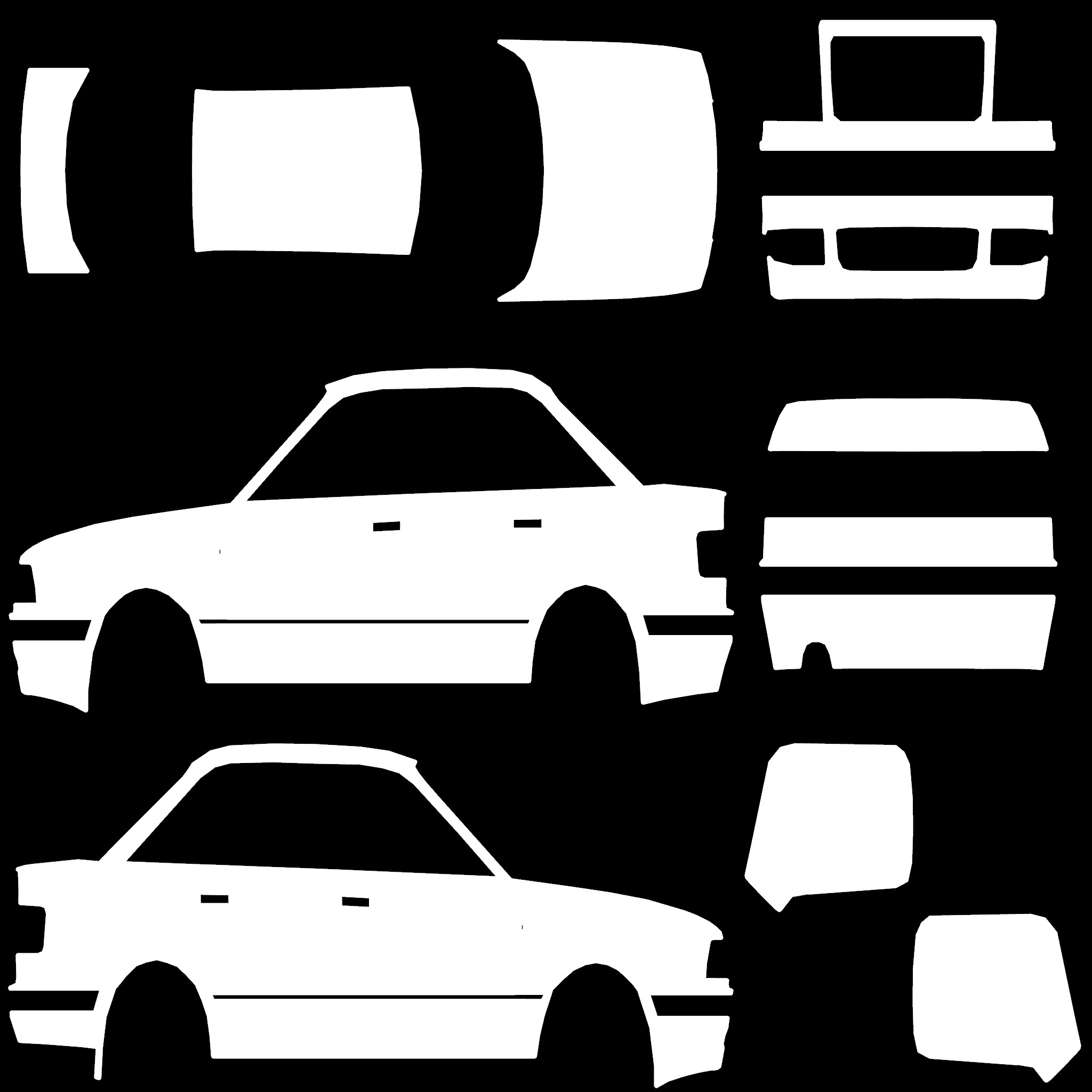 The LFS Vehicle editor provides options to create skin templates. A template helps you create skins for a vehicle by giving you the outlines of the vehicle's shape, within which you can draw the livery that will be drawn onto the vehicle.