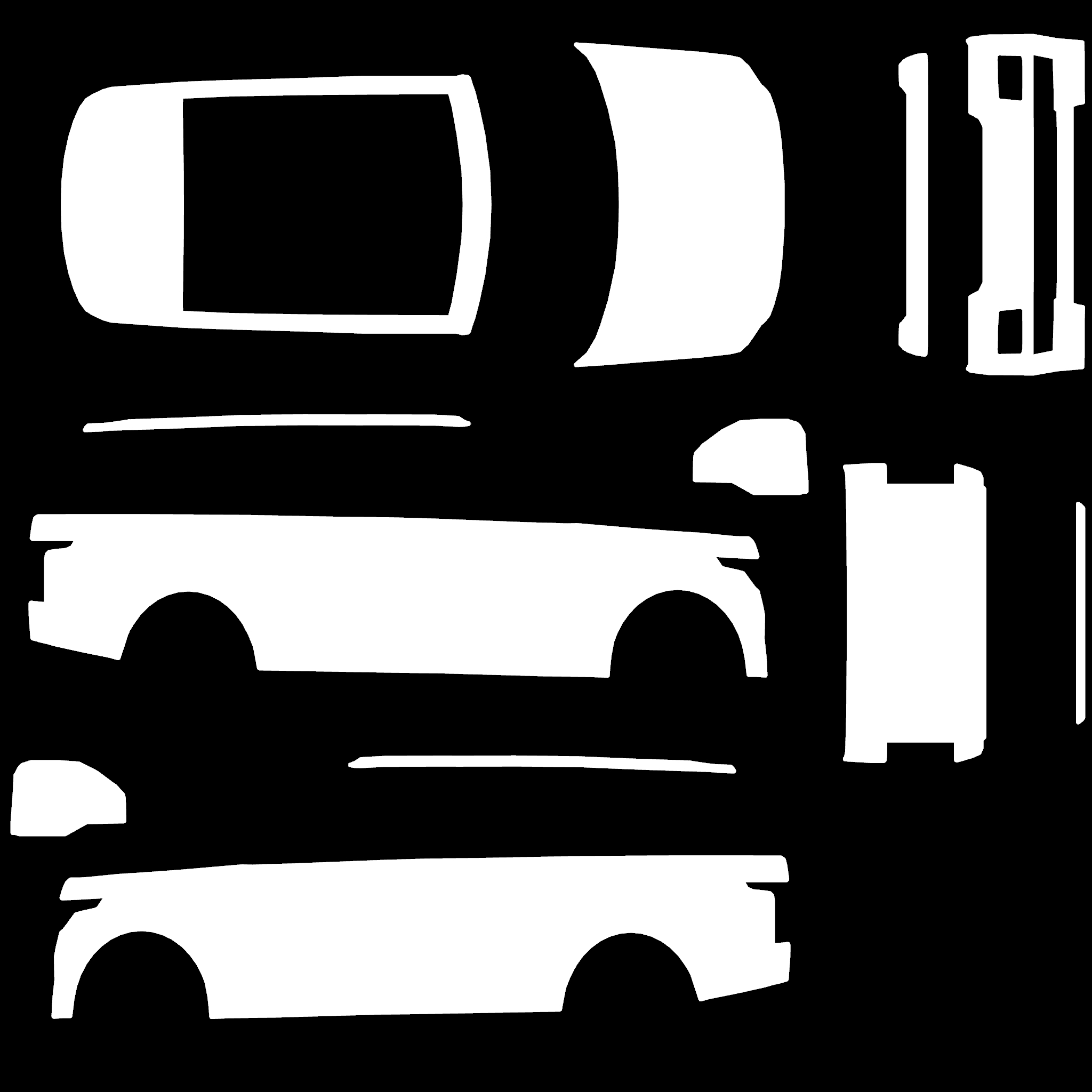 The LFS Vehicle editor provides options to create skin templates. A template helps you create skins for a vehicle by giving you the outlines of the vehicle's shape, within which you can draw the livery that will be drawn onto the vehicle.