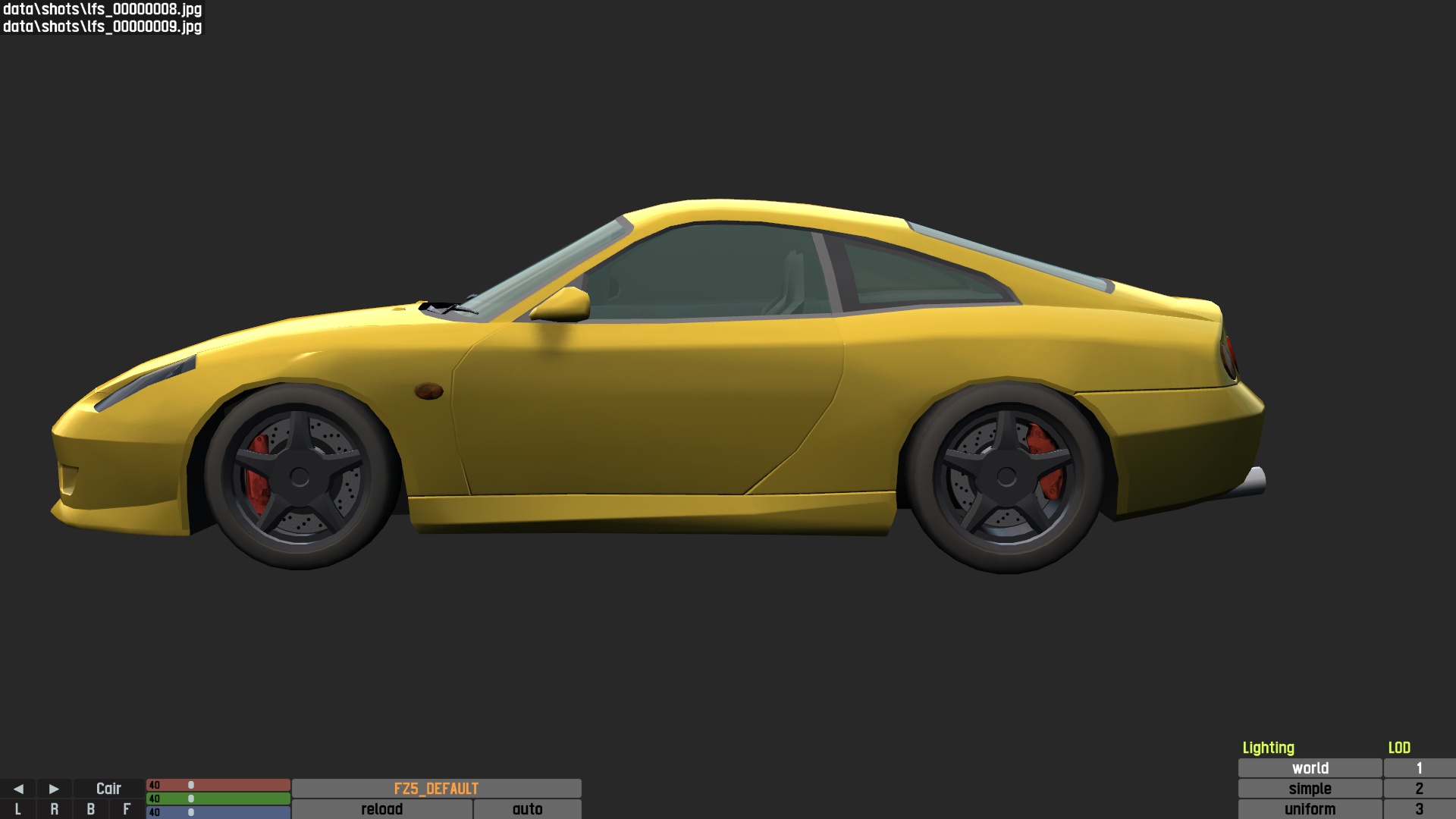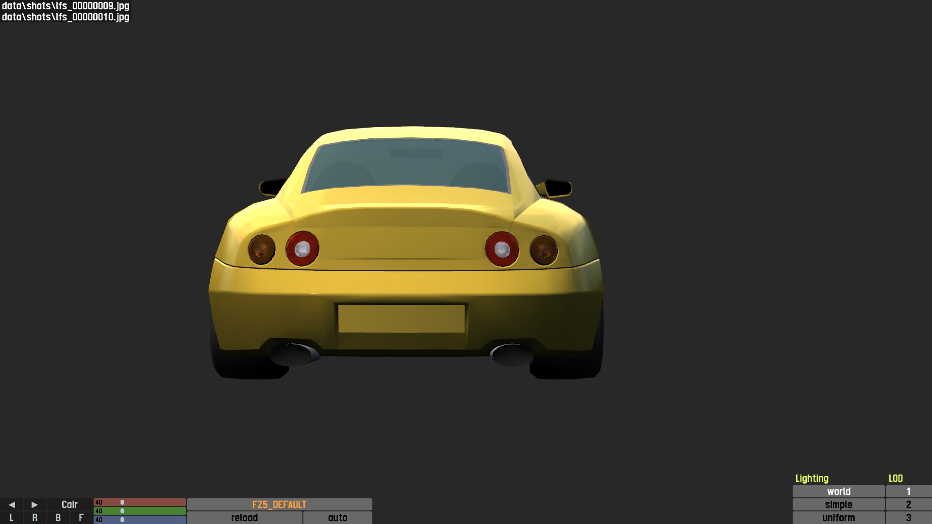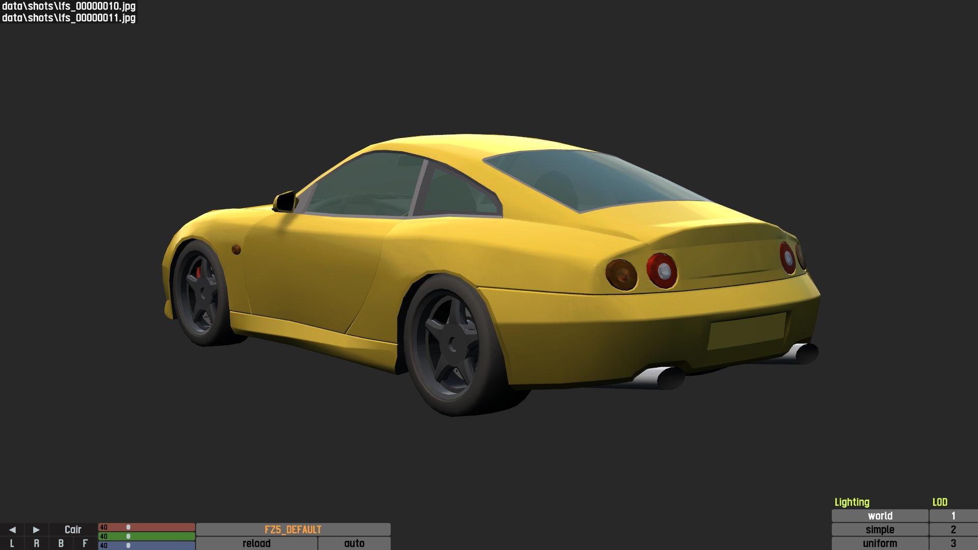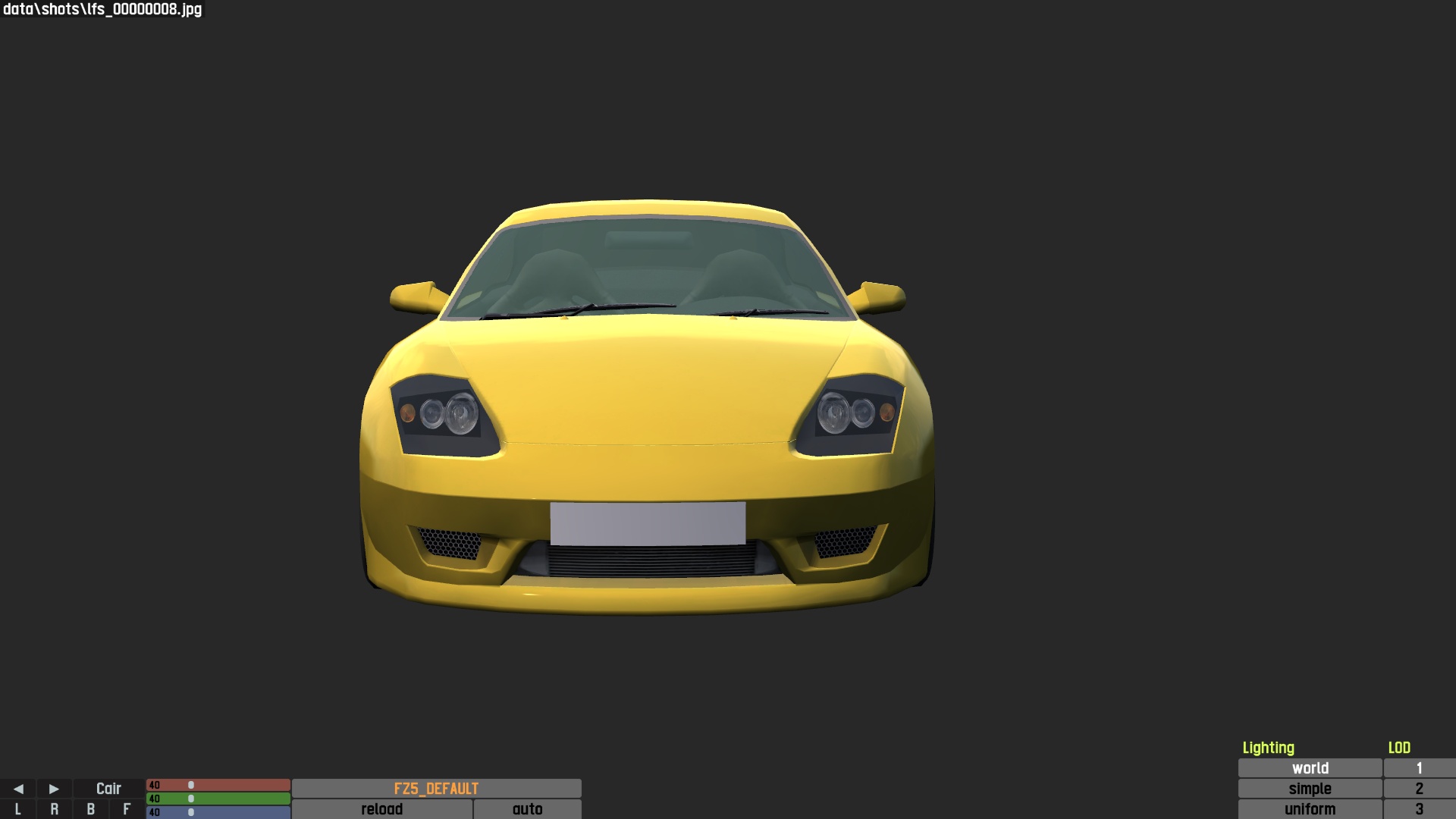 The LFS Vehicle editor provides options to create skin templates. A template helps you create skins for a vehicle by giving you the outlines of the vehicle's shape, within which you can draw the livery that will be drawn onto the vehicle.