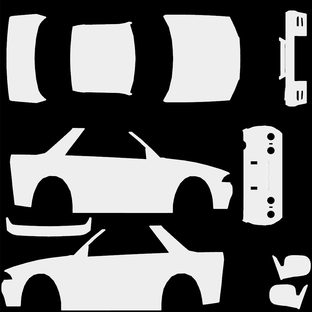 The LFS Vehicle editor provides options to create skin templates. A template helps you create skins for a vehicle by giving you the outlines of the vehicle's shape, within which you can draw the livery that will be drawn onto the vehicle.