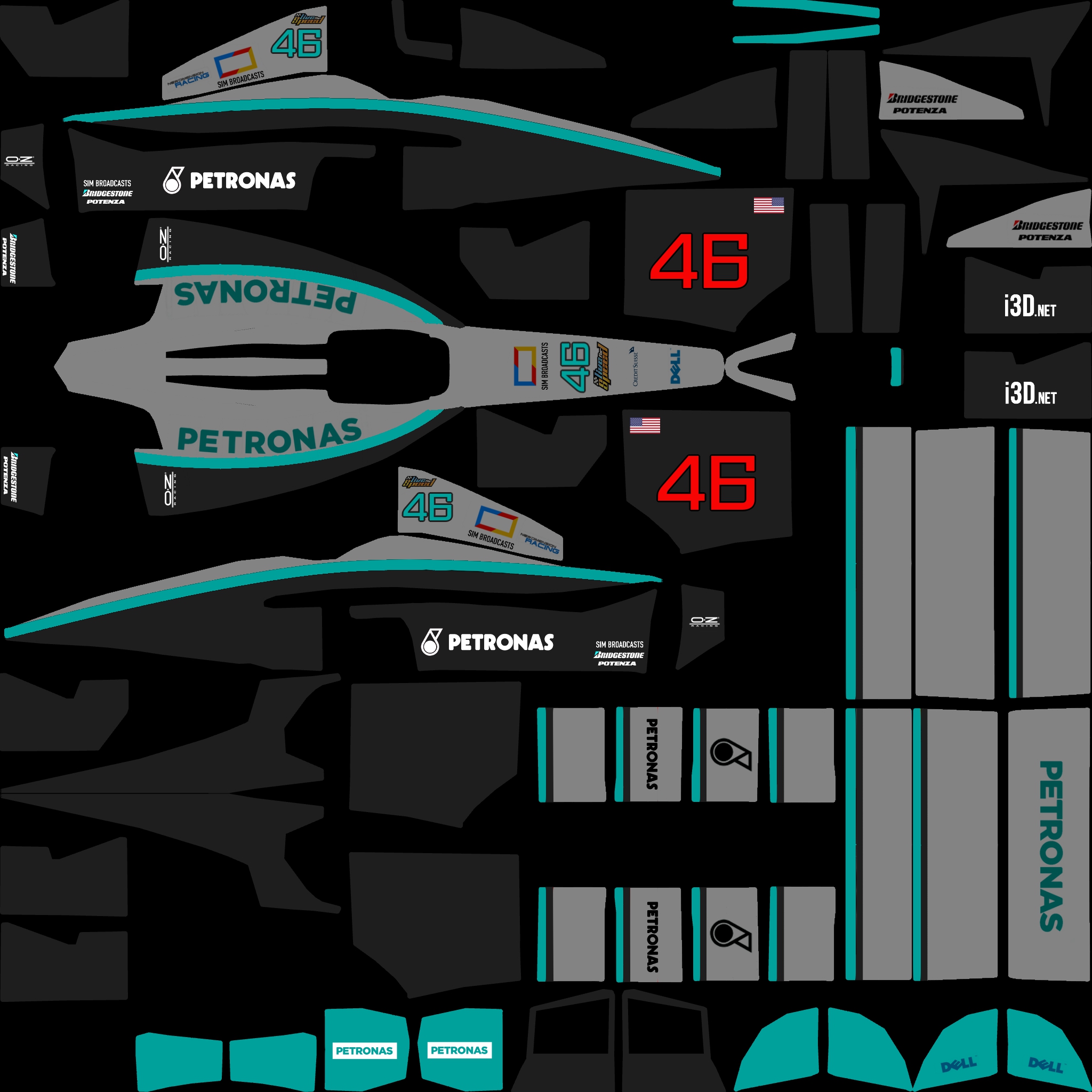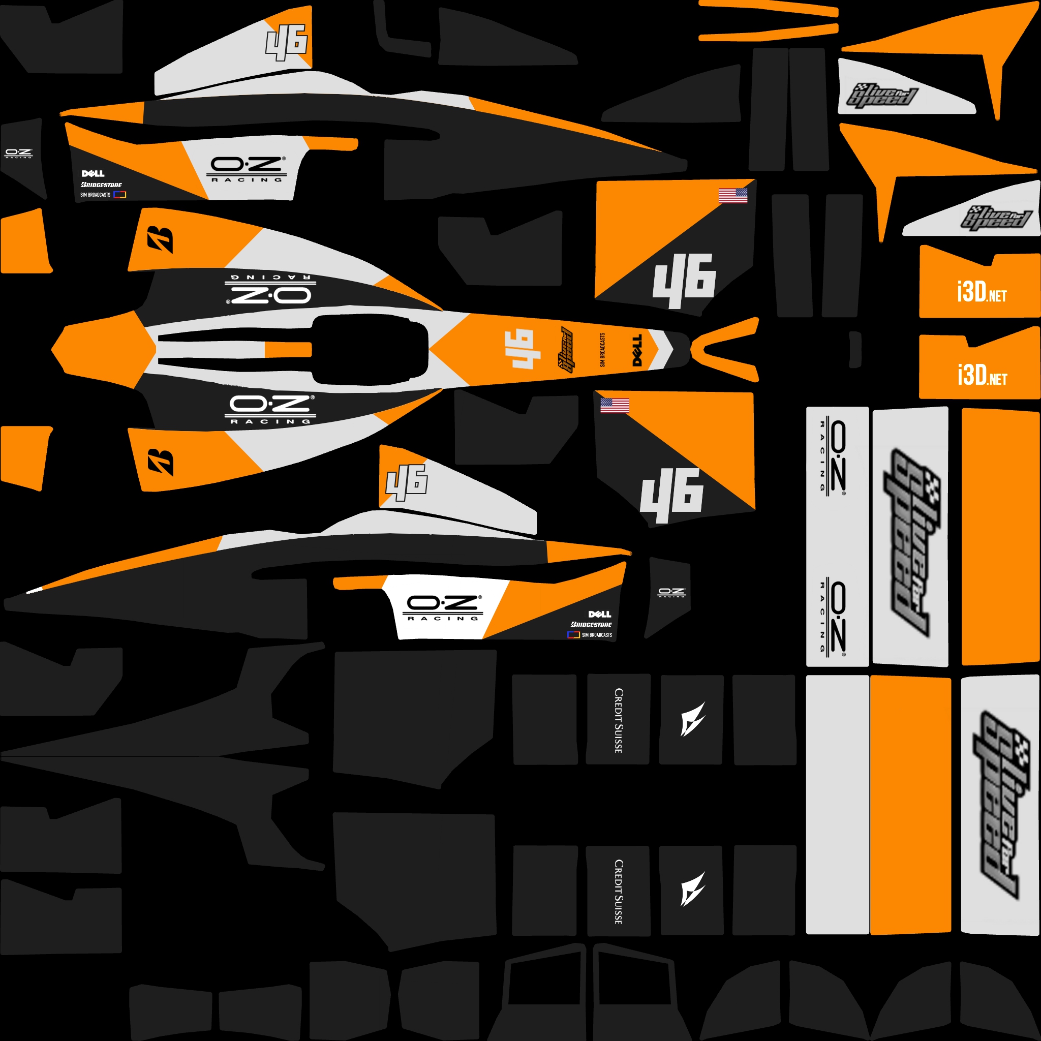 The LFS Vehicle editor provides options to create skin templates. A template helps you create skins for a vehicle by giving you the outlines of the vehicle's shape, within which you can draw the livery that will be drawn onto the vehicle.
