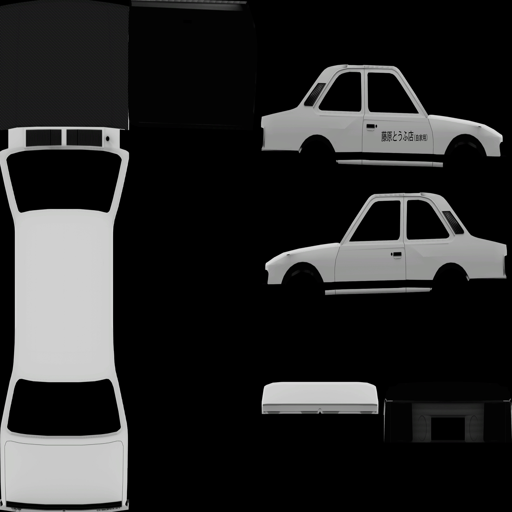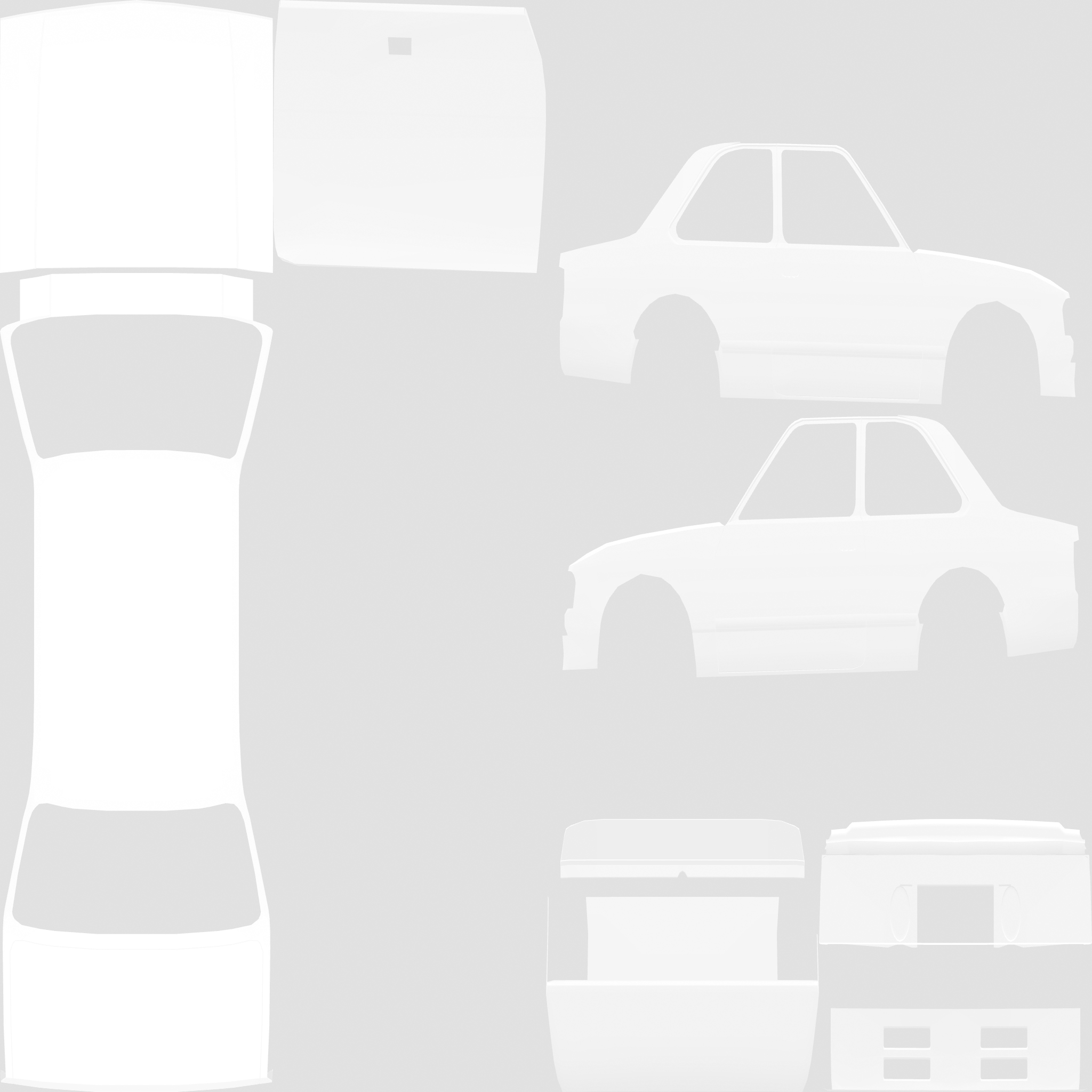 The LFS Vehicle editor provides options to create skin templates. A template helps you create skins for a vehicle by giving you the outlines of the vehicle's shape, within which you can draw the livery that will be drawn onto the vehicle.