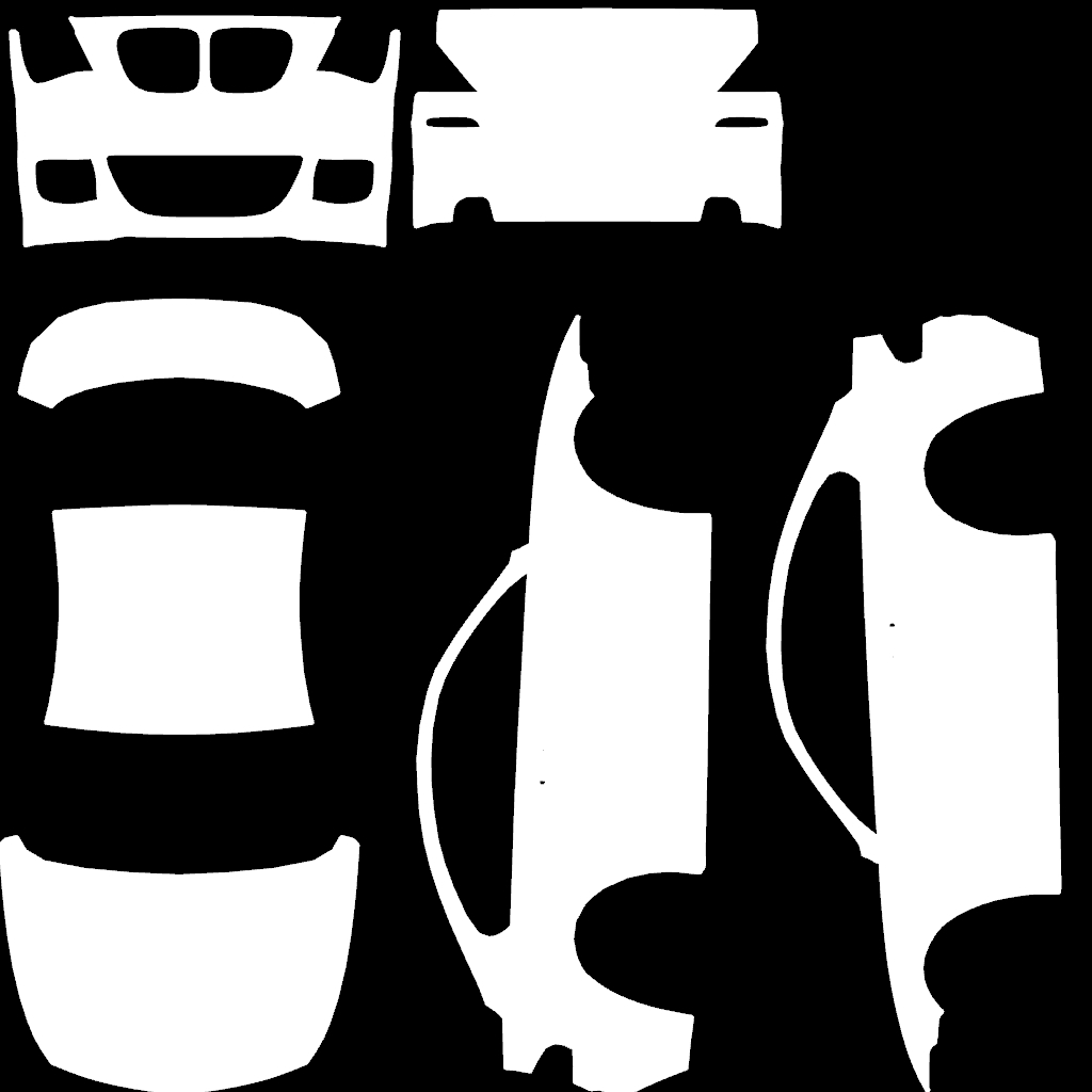The LFS Vehicle editor provides options to create skin templates. A template helps you create skins for a vehicle by giving you the outlines of the vehicle's shape, within which you can draw the livery that will be drawn onto the vehicle.