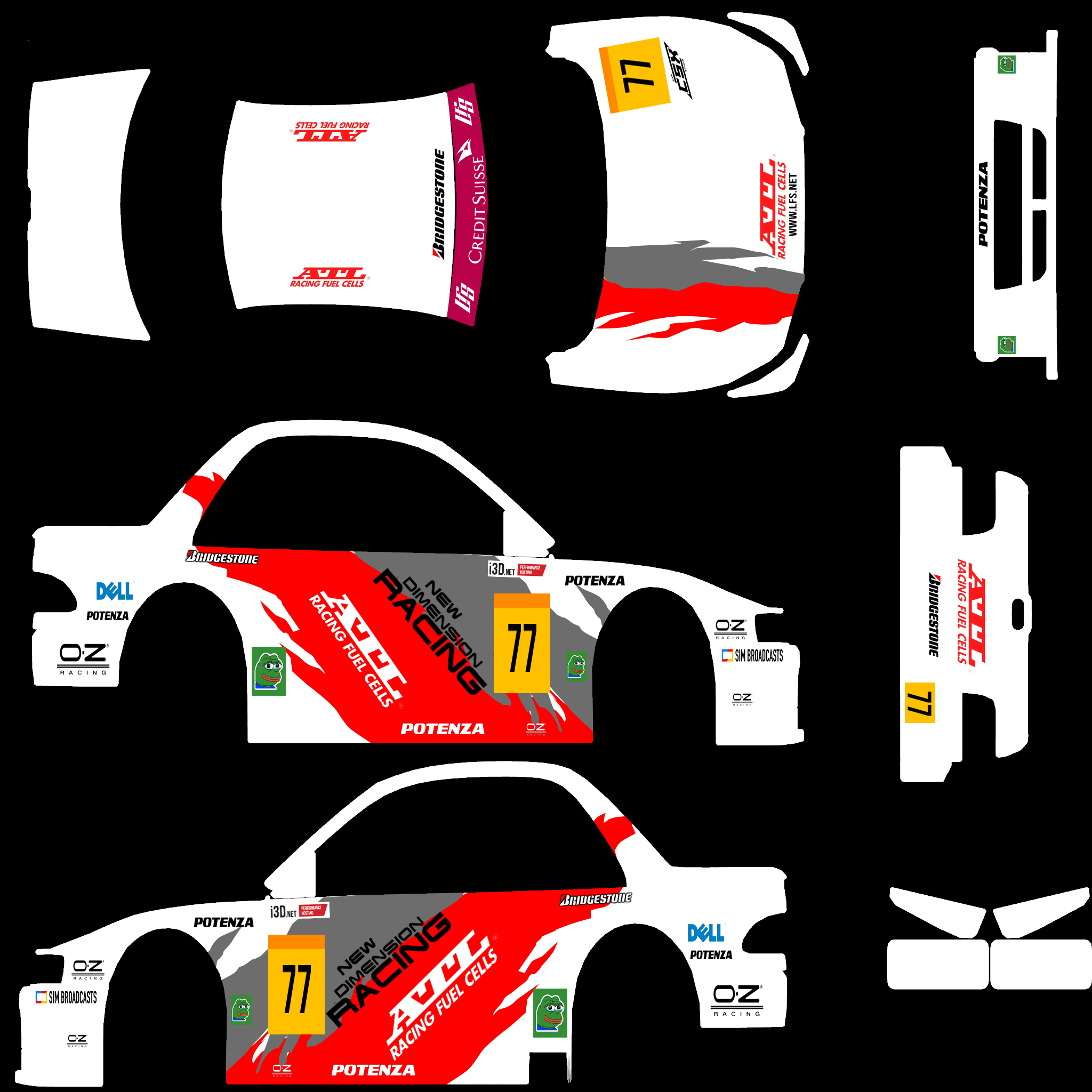 The LFS Vehicle editor provides options to create skin templates. A template helps you create skins for a vehicle by giving you the outlines of the vehicle's shape, within which you can draw the livery that will be drawn onto the vehicle.