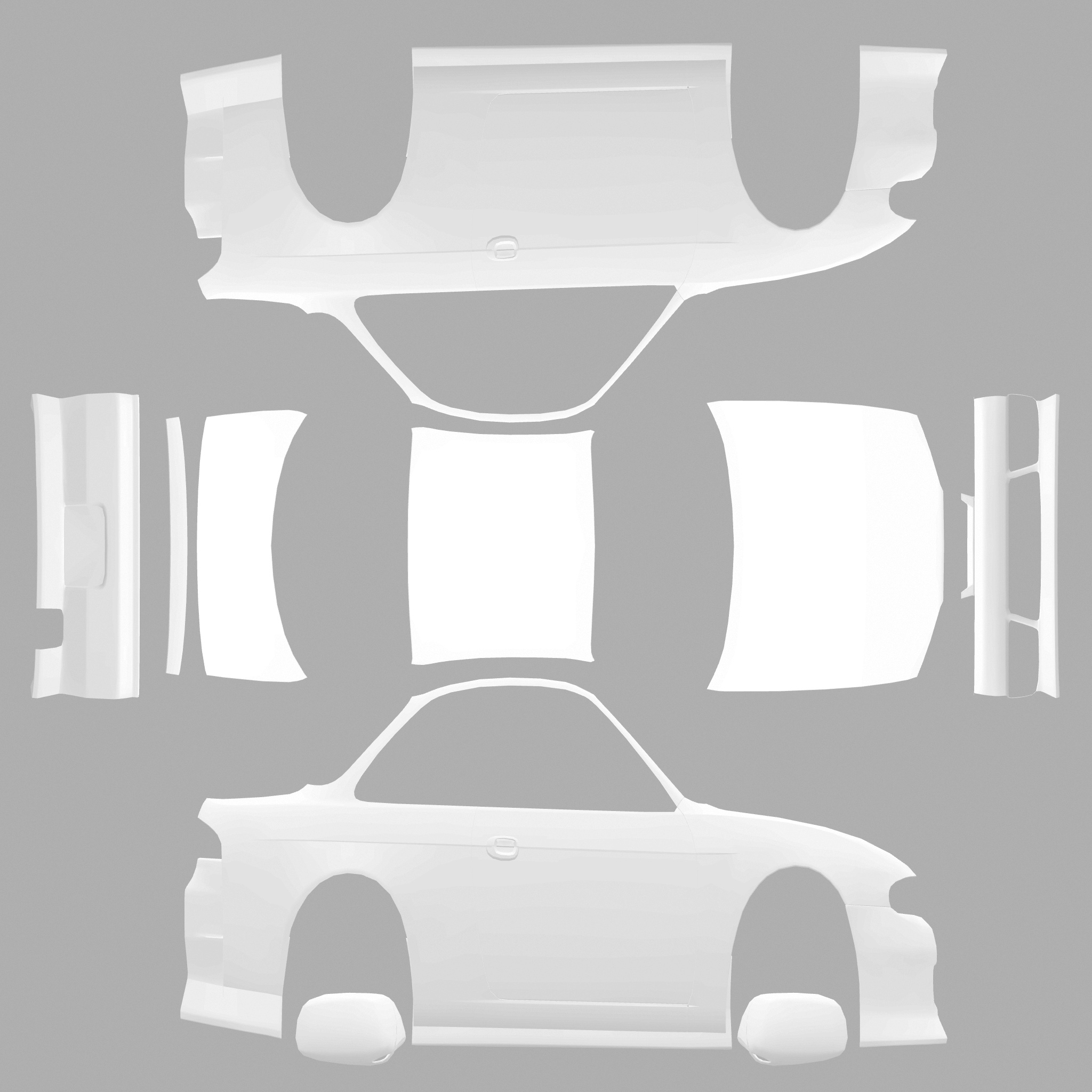 The LFS Vehicle editor provides options to create skin templates. A template helps you create skins for a vehicle by giving you the outlines of the vehicle's shape, within which you can draw the livery that will be drawn onto the vehicle.
