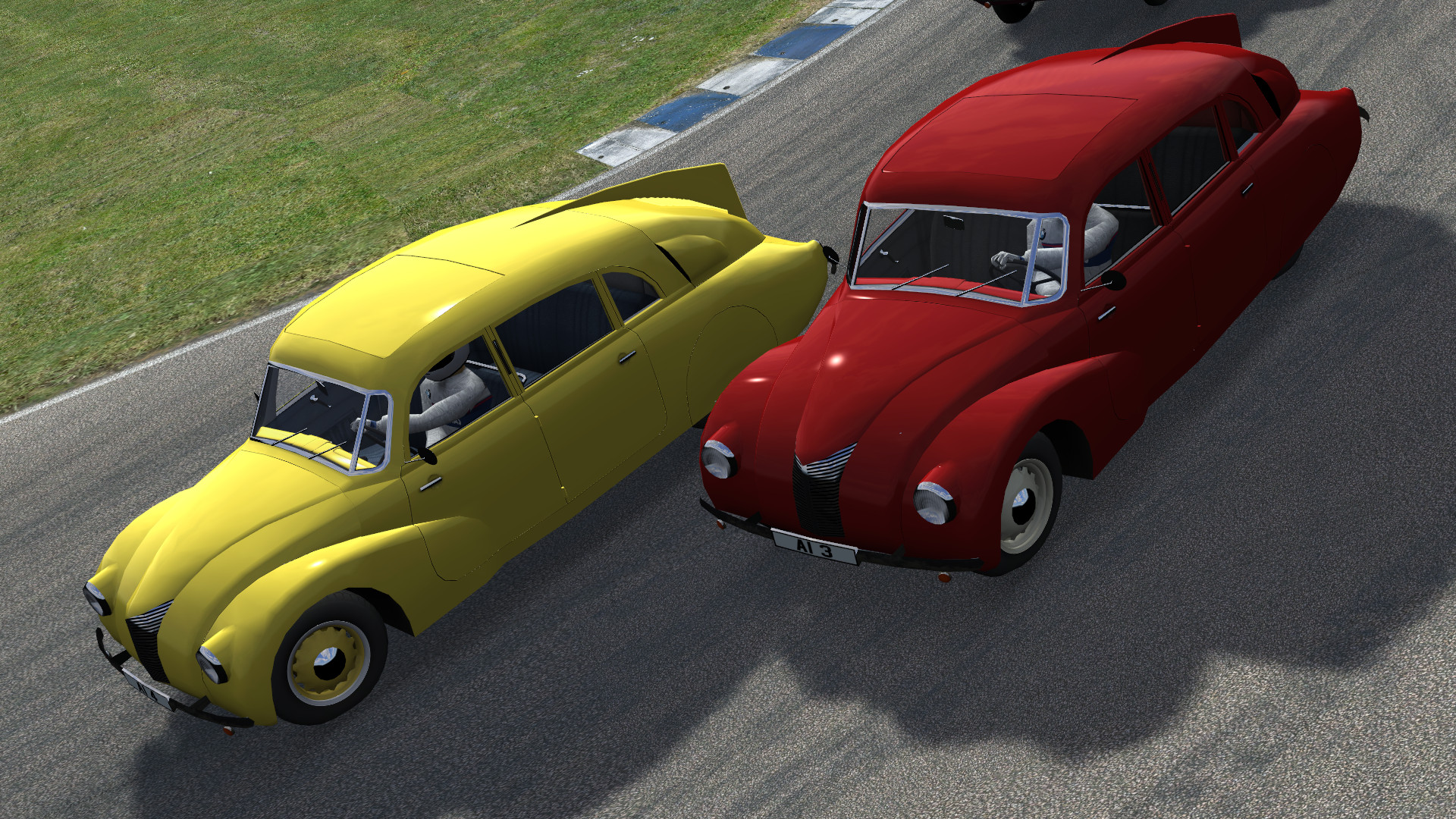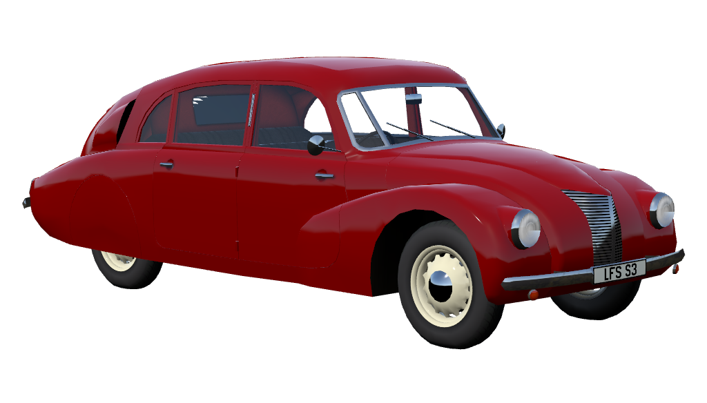 Due to the fully independent suspension, this is one of a few 1930s cars which can be simulated in the LFS, without some rough approximations of solid axles. The suspension is stiffer to reproduce a non-linearity of a transverse leaf springing. Using modern radial tires, the car can be easily flipped over. Therefore there are two stock setups with different approximations of the original bias-ply tires. The "adventure" setup uses knobbly tires, while the "classic" setup uses overinflated road tires. The engine had to be downsized to keep realistic torque. To keep realism of the mod, please avoid camber adjustments on the rear axle when creating personal setups.