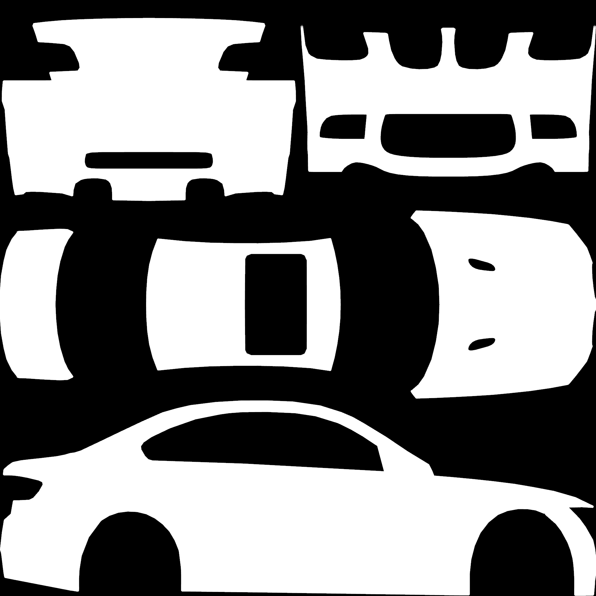 The LFS Vehicle editor provides options to create skin templates. A template helps you create skins for a vehicle by giving you the outlines of the vehicle's shape, within which you can draw the livery that will be drawn onto the vehicle.