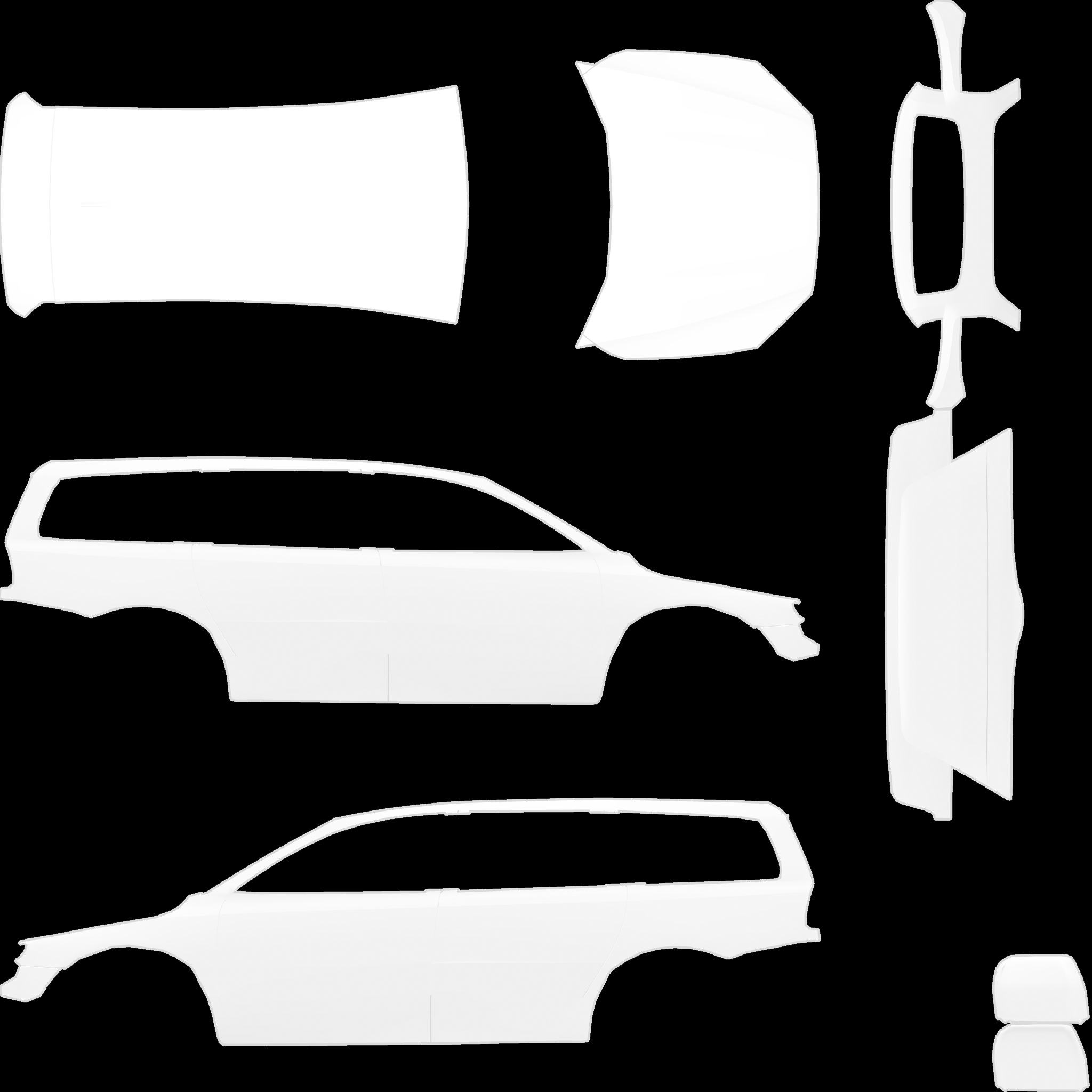 The LFS Vehicle editor provides options to create skin templates. A template helps you create skins for a vehicle by giving you the outlines of the vehicle's shape, within which you can draw the livery that will be drawn onto the vehicle.