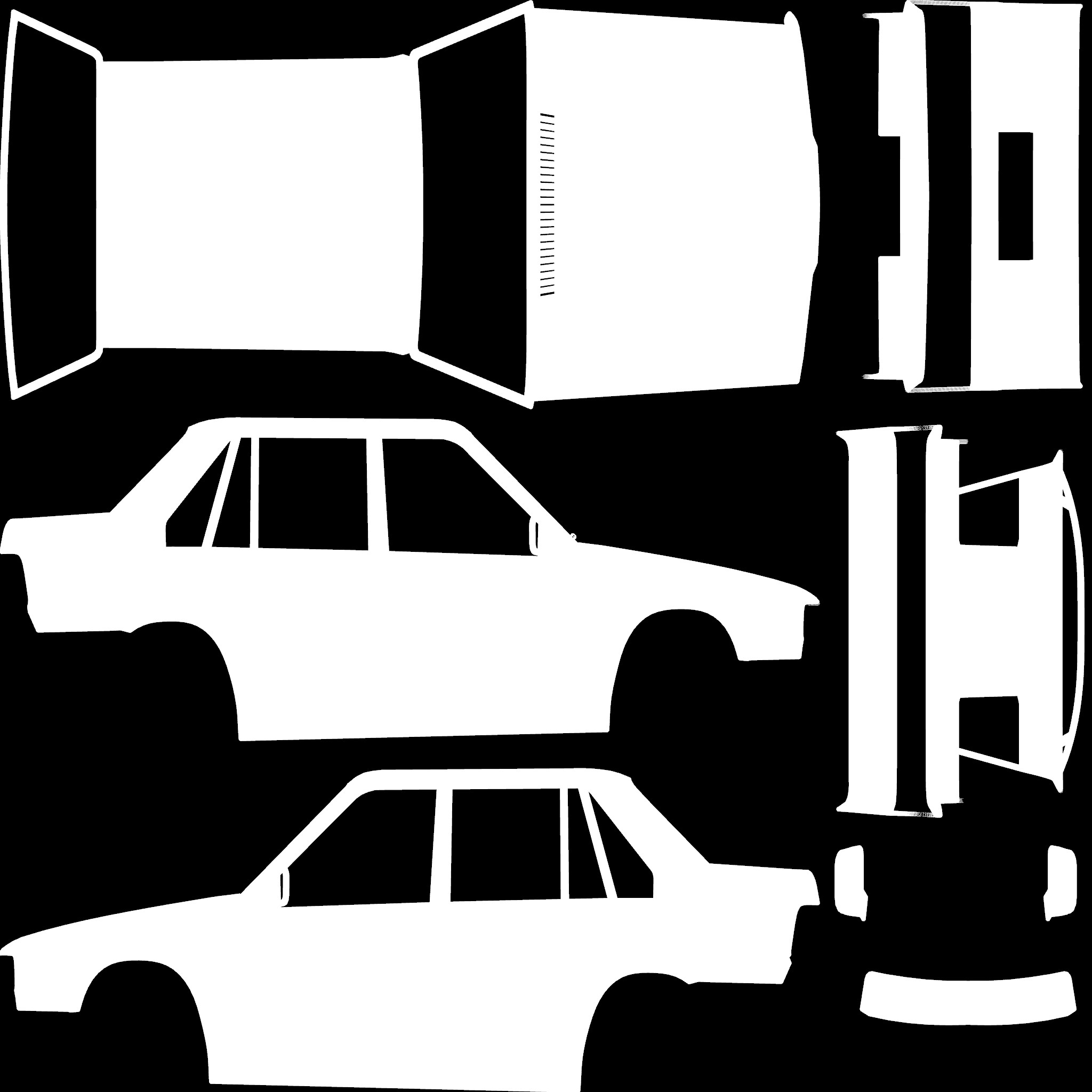 The LFS Vehicle editor provides options to create skin templates. A template helps you create skins for a vehicle by giving you the outlines of the vehicle's shape, within which you can draw the livery that will be drawn onto the vehicle.