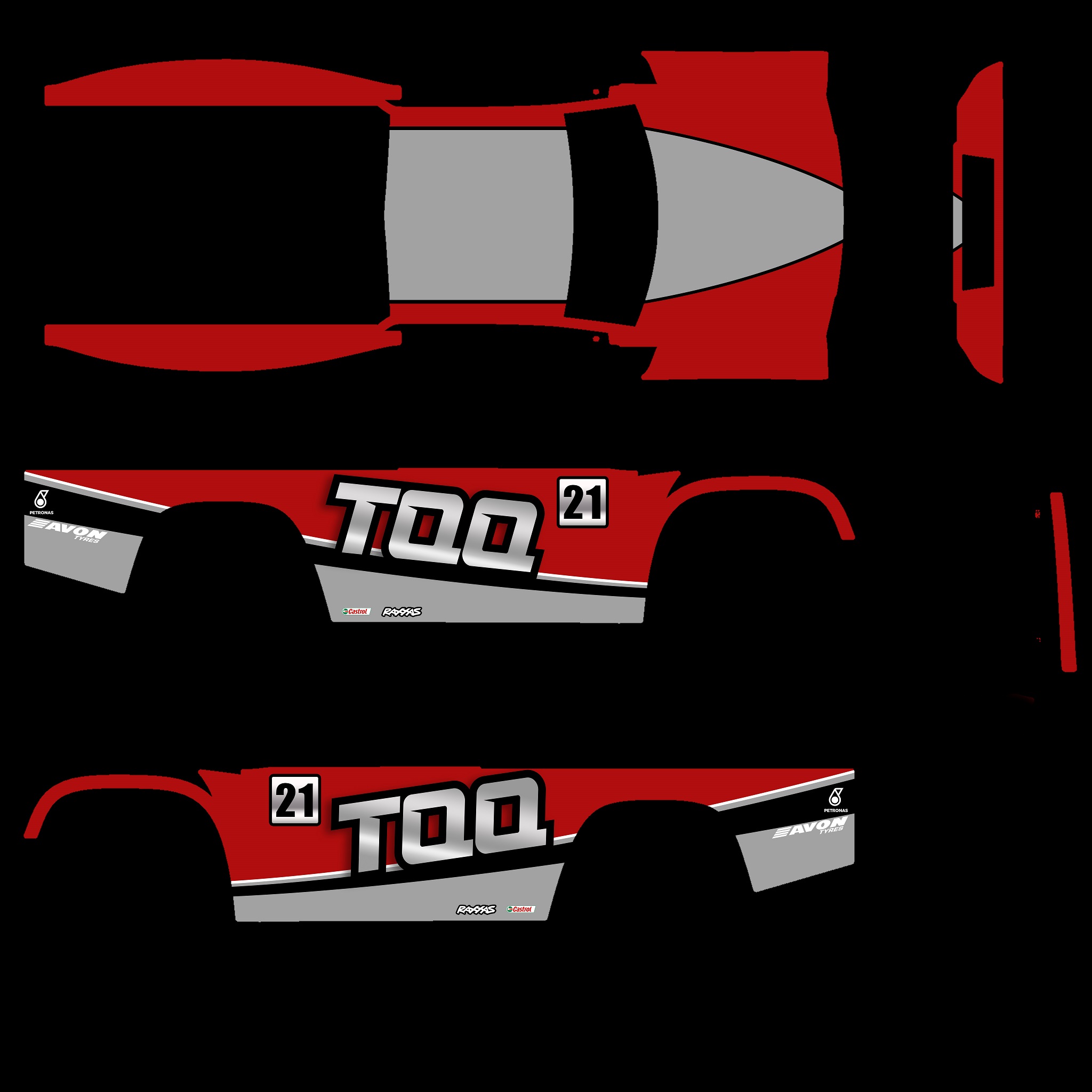 The LFS Vehicle editor provides options to create skin templates. A template helps you create skins for a vehicle by giving you the outlines of the vehicle's shape, within which you can draw the livery that will be drawn onto the vehicle.