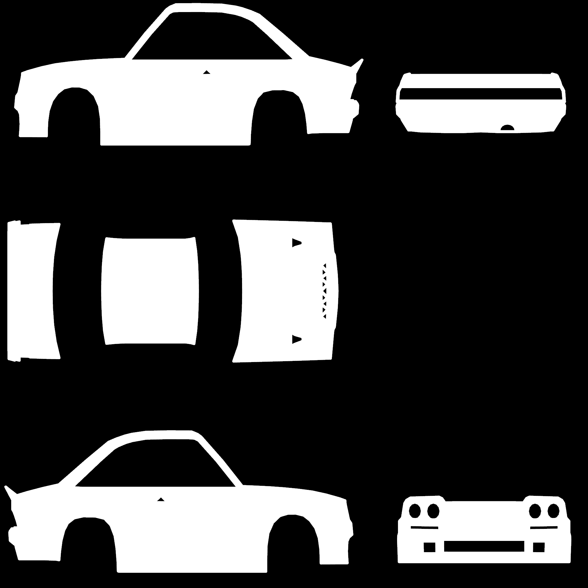 The LFS Vehicle editor provides options to create skin templates. A template helps you create skins for a vehicle by giving you the outlines of the vehicle's shape, within which you can draw the livery that will be drawn onto the vehicle.
