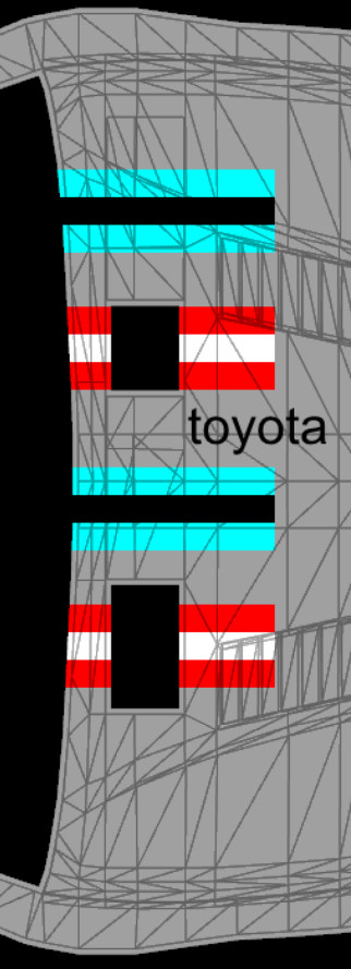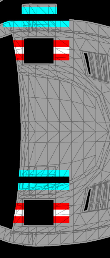 The LFS Vehicle editor provides options to create skin templates. A template helps you create skins for a vehicle by giving you the outlines of the vehicle's shape, within which you can draw the livery that will be drawn onto the vehicle.
