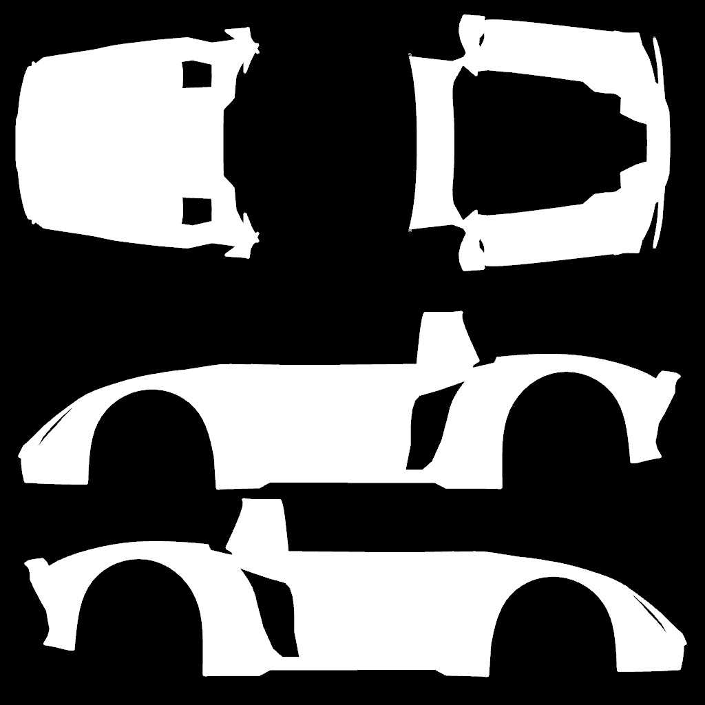 The LFS Vehicle editor provides options to create skin templates. A template helps you create skins for a vehicle by giving you the outlines of the vehicle's shape, within which you can draw the livery that will be drawn onto the vehicle.