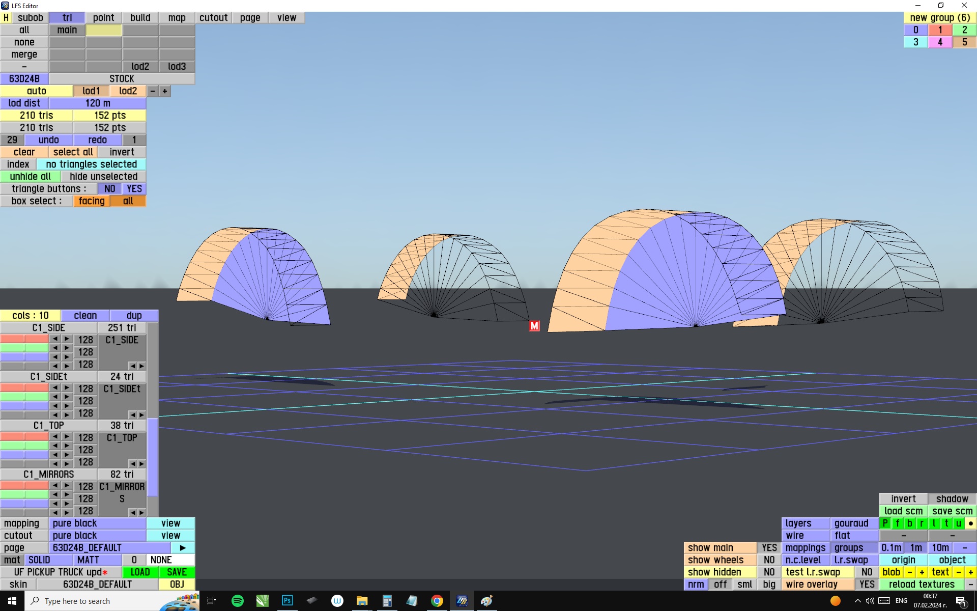 The LFS Vehicle editor provides options to create skin templates. A template helps you create skins for a vehicle by giving you the outlines of the vehicle's shape, within which you can draw the livery that will be drawn onto the vehicle.