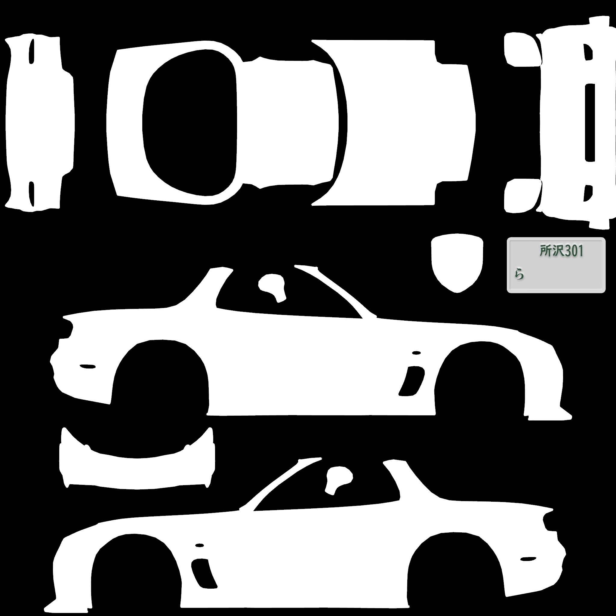 The LFS Vehicle editor provides options to create skin templates. A template helps you create skins for a vehicle by giving you the outlines of the vehicle's shape, within which you can draw the livery that will be drawn onto the vehicle.