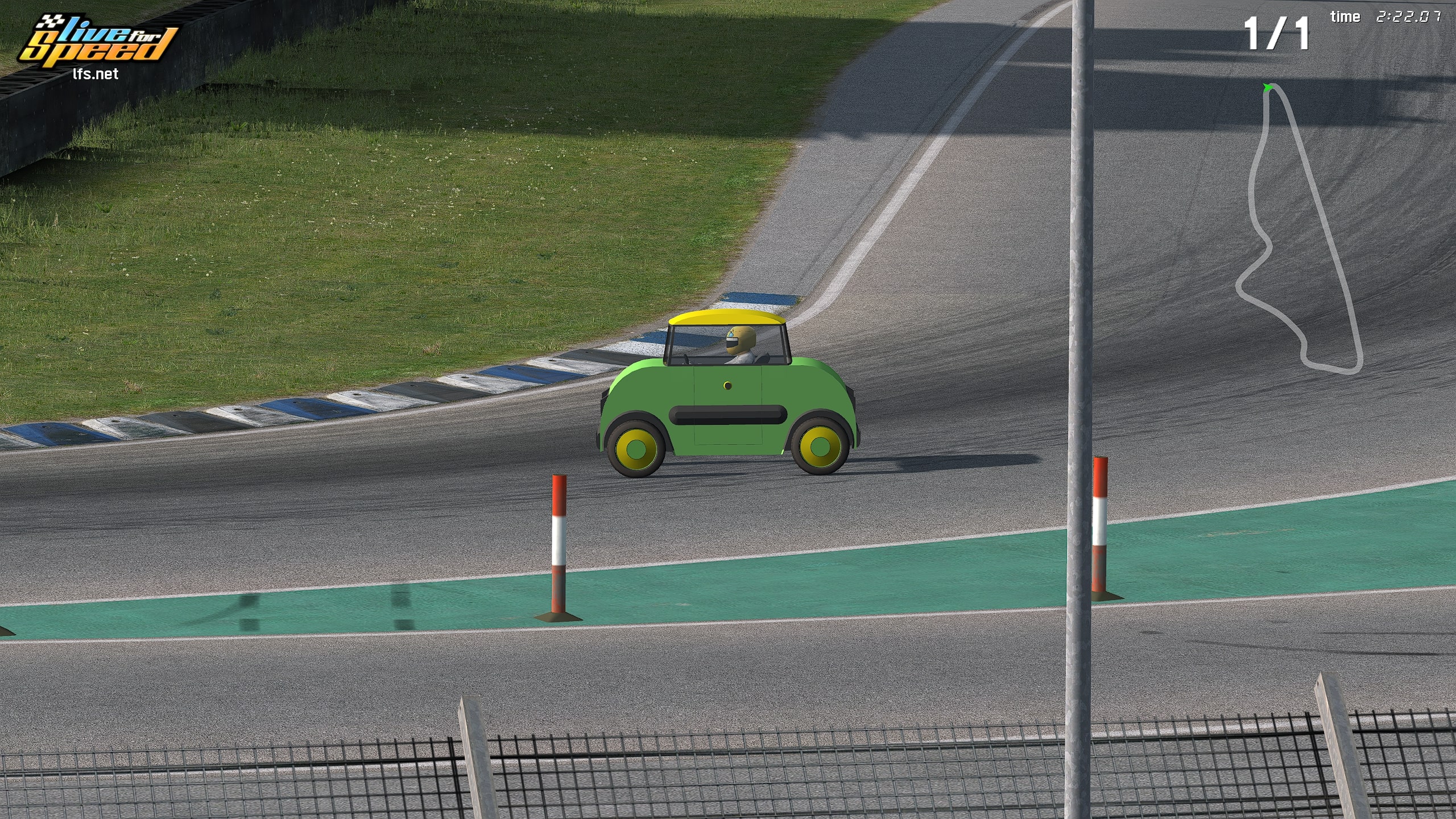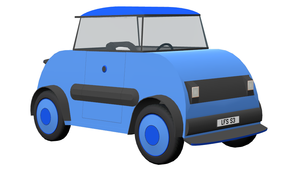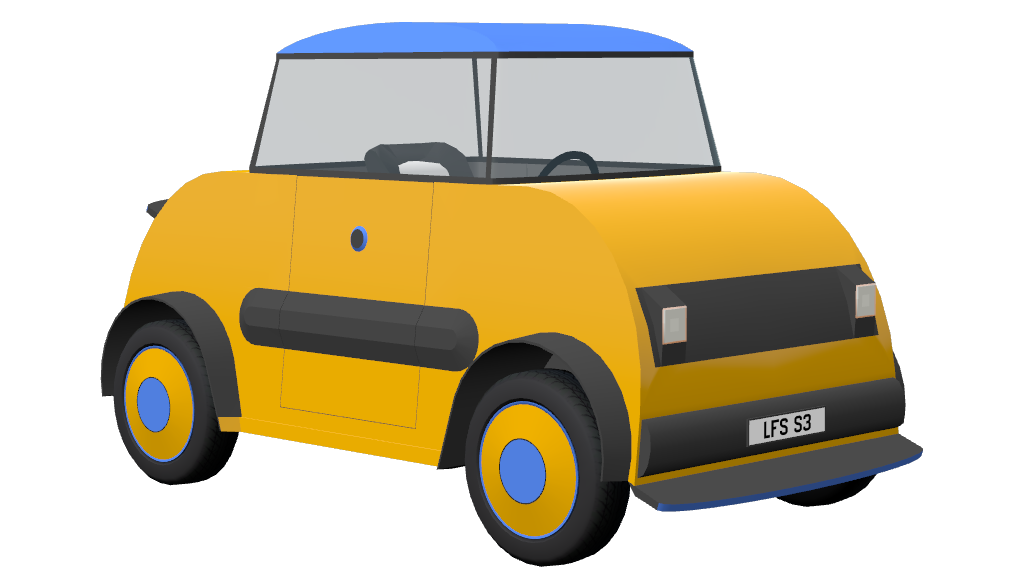 The author of this Vehicle Mod has indicated that this work is an original creation and has provided the following description of the approach:Used Citroën AMI's wheelbase, track width, weight, length, width, height values, wheel size, and modelled a car, 100% in LFS Editor, around these dimensions, all by myself.