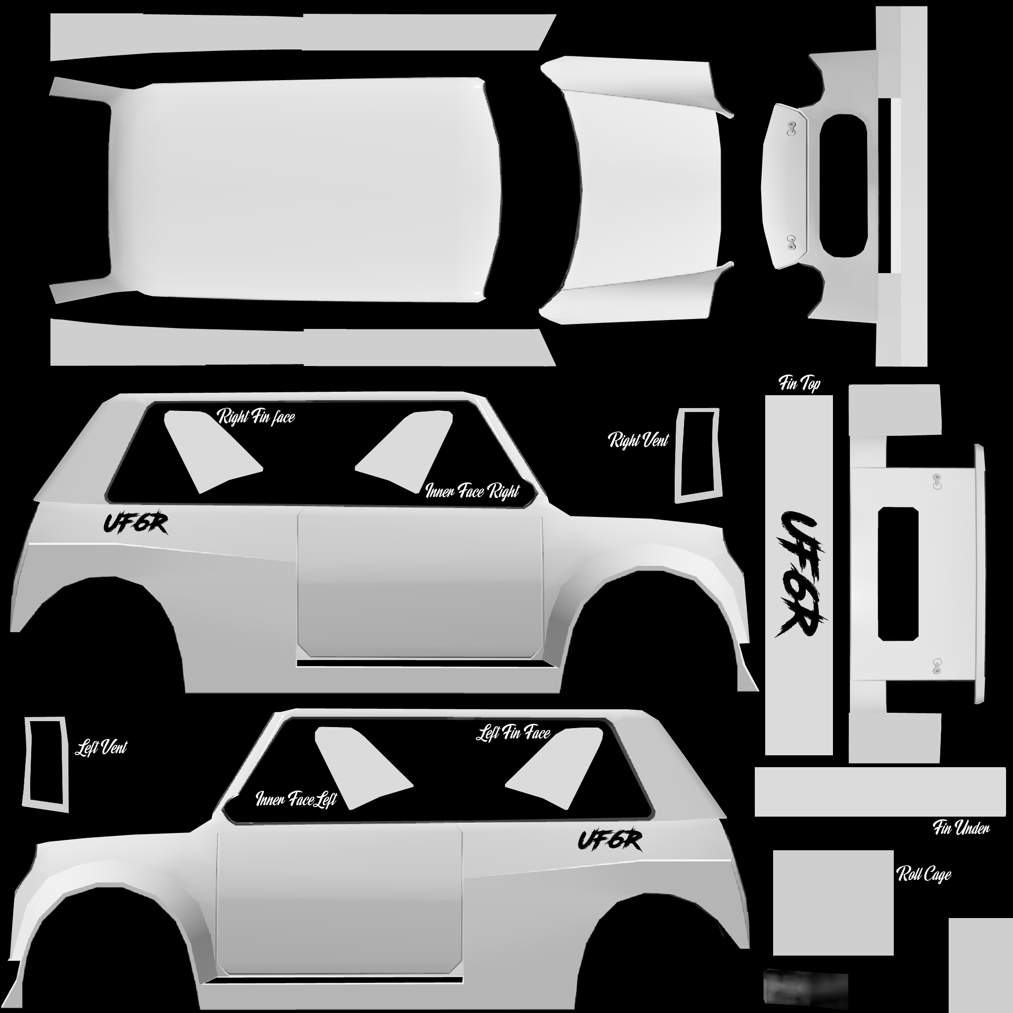 The LFS Vehicle editor provides options to create skin templates. A template helps you create skins for a vehicle by giving you the outlines of the vehicle's shape, within which you can draw the livery that will be drawn onto the vehicle.